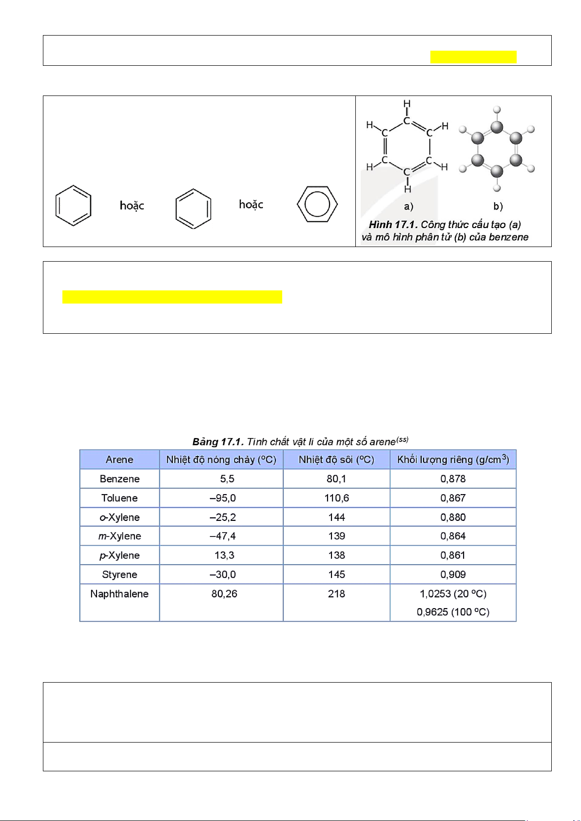 Ví dụ 1. Hãy so sánh nhiệt độ sôi của benzene, toluene, o-xylene (Bảng 17.1) và giải thích? Đáp án: