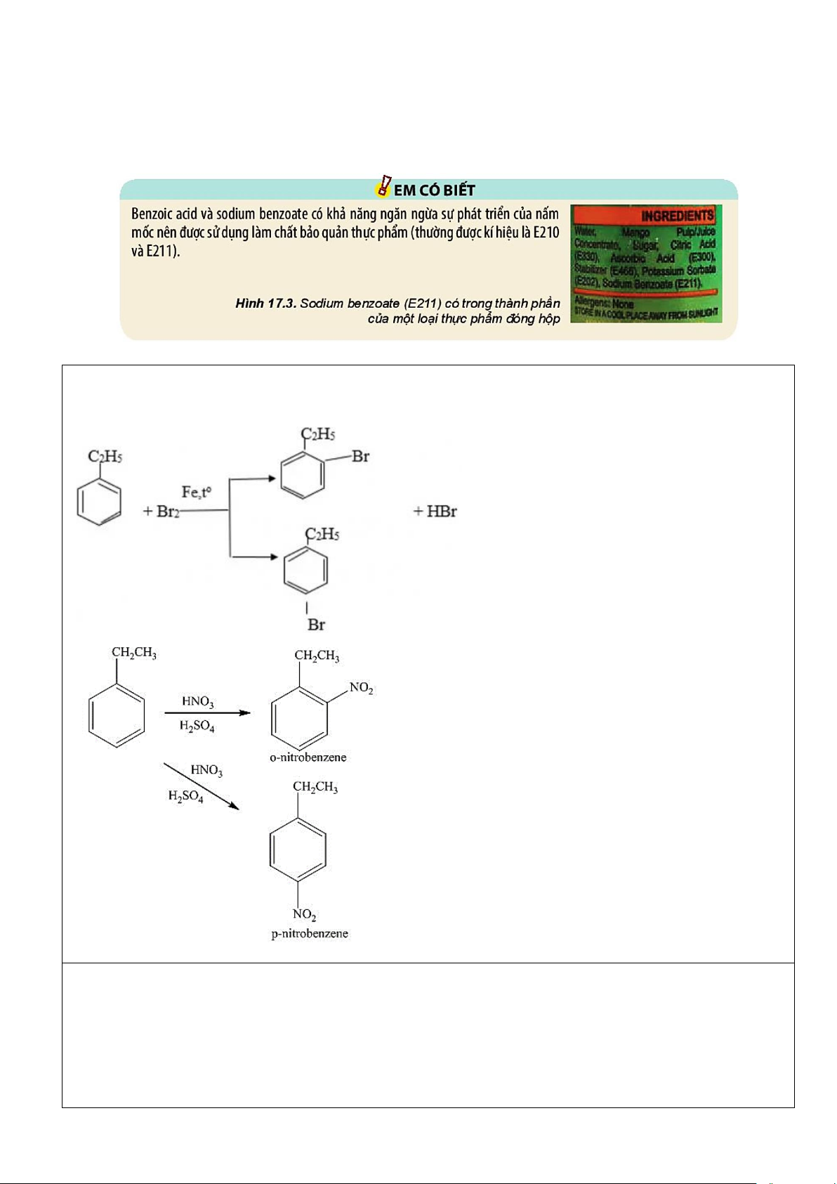 Ví dụ 1. Viết phương trình phản ứng của ethylbenzene với các tác nhân sau: a) Br2/FeBr3, to. b) HNO3 đặc/H2SO4 đặc. Đáp án: