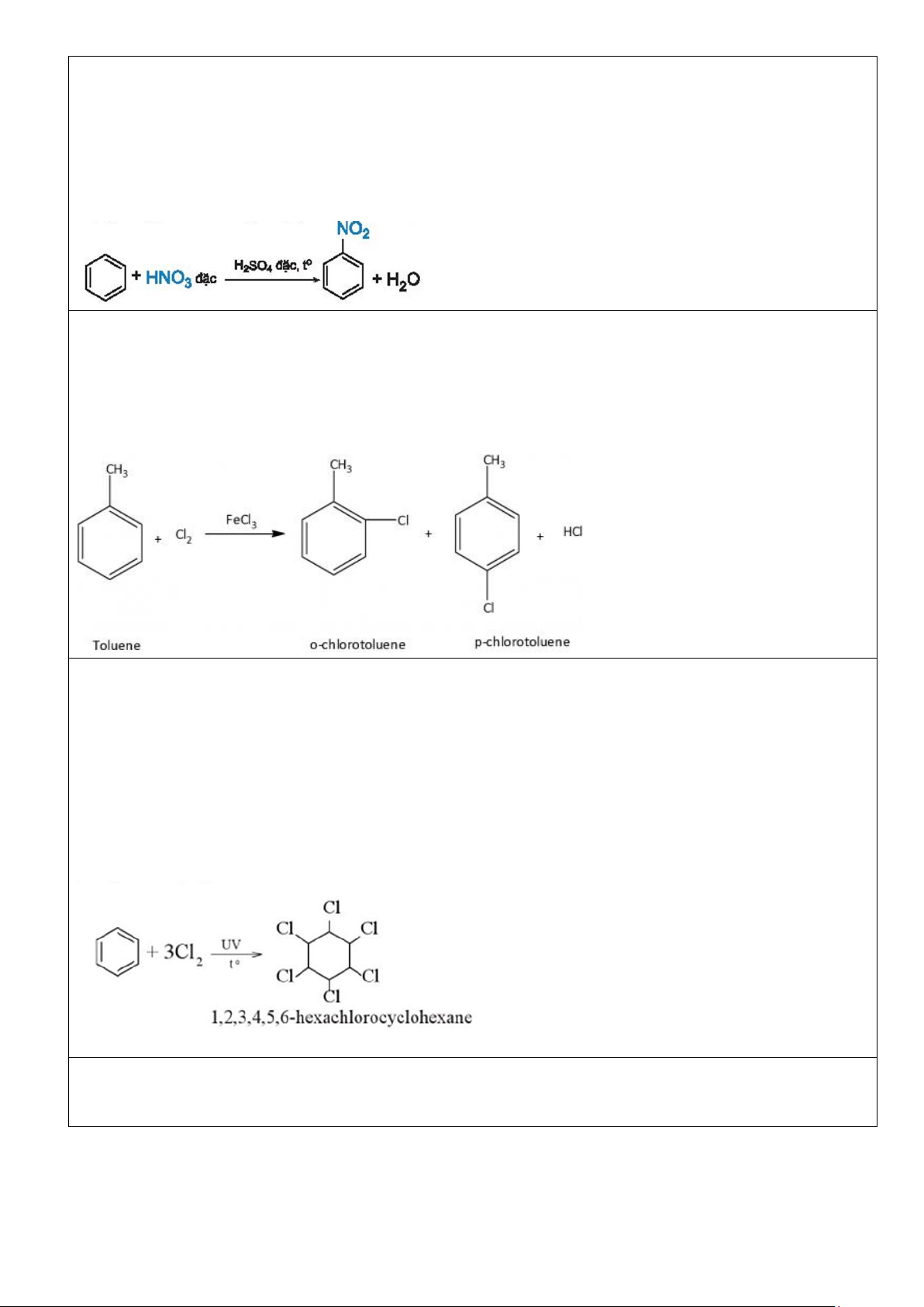 - Phản ứng cộng chlorine vào benzene trong điều kiện có ánh sáng tử ngoại và đun nóng, sản phẩm thu