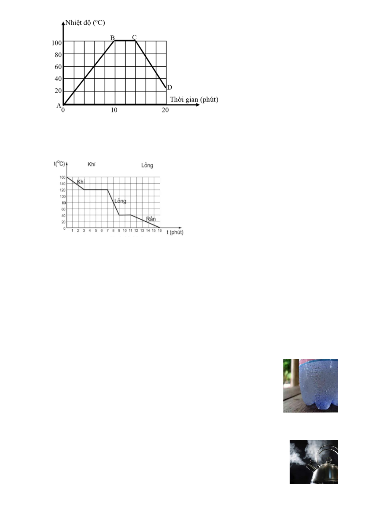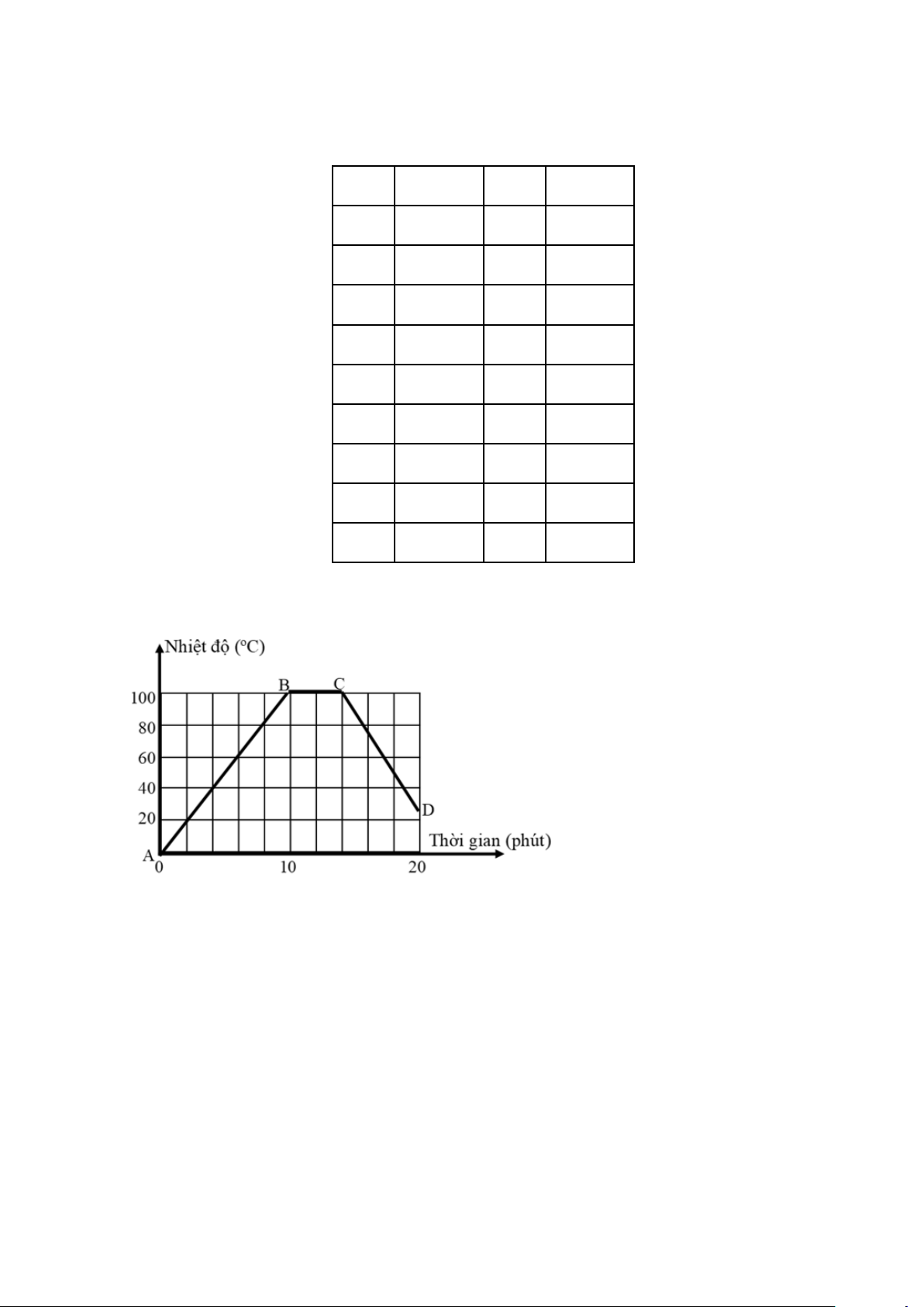 Câu 17. Hình bên dưới là đường biểu diễn sự thay đổi nhiệt độ theo thời gian của nước khi được