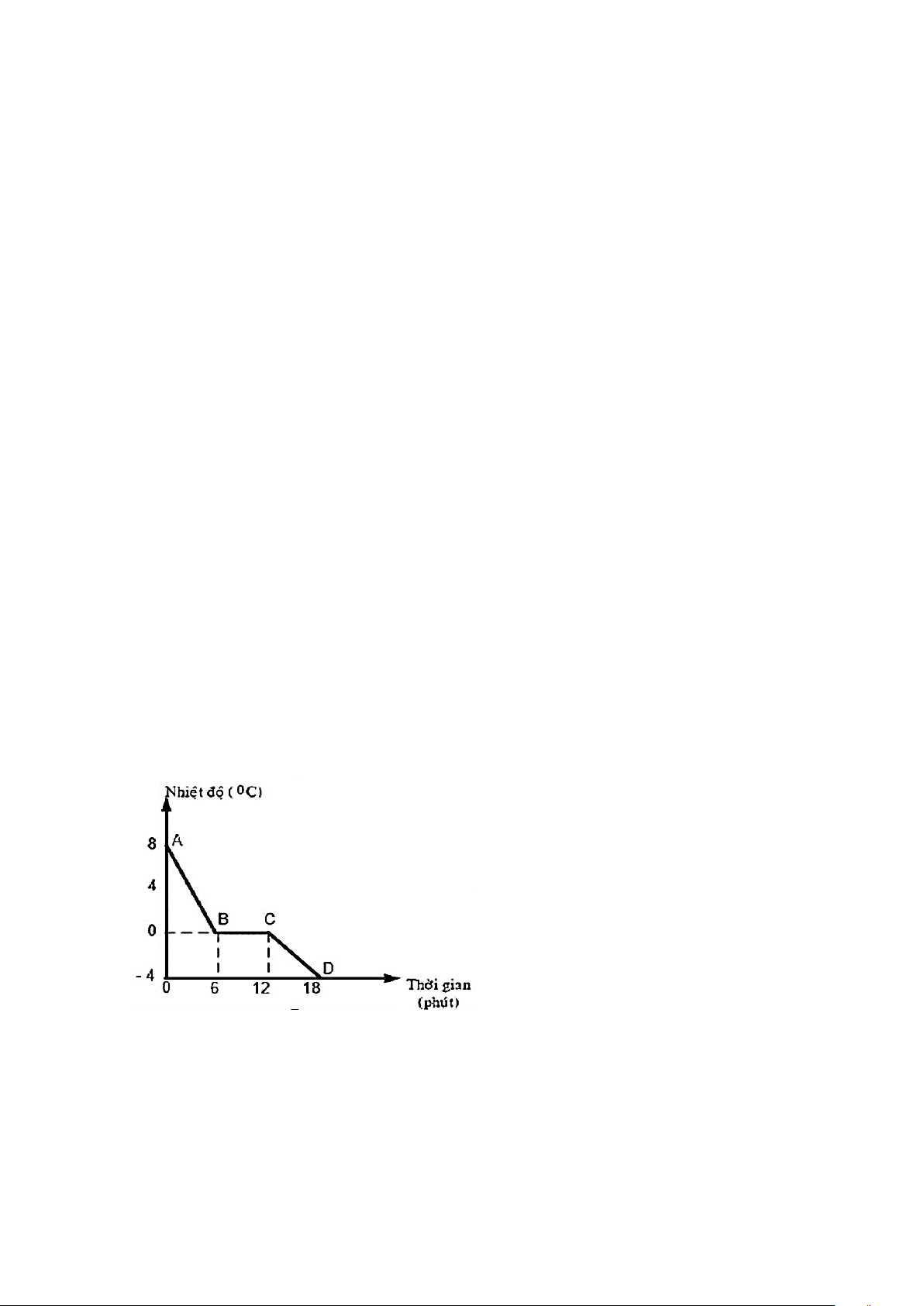 Câu 4. Đồ thị Hình 3 biểu diễn sự thay đổi nhiệt độ theo thời gian khi một chất lỏng nào đó