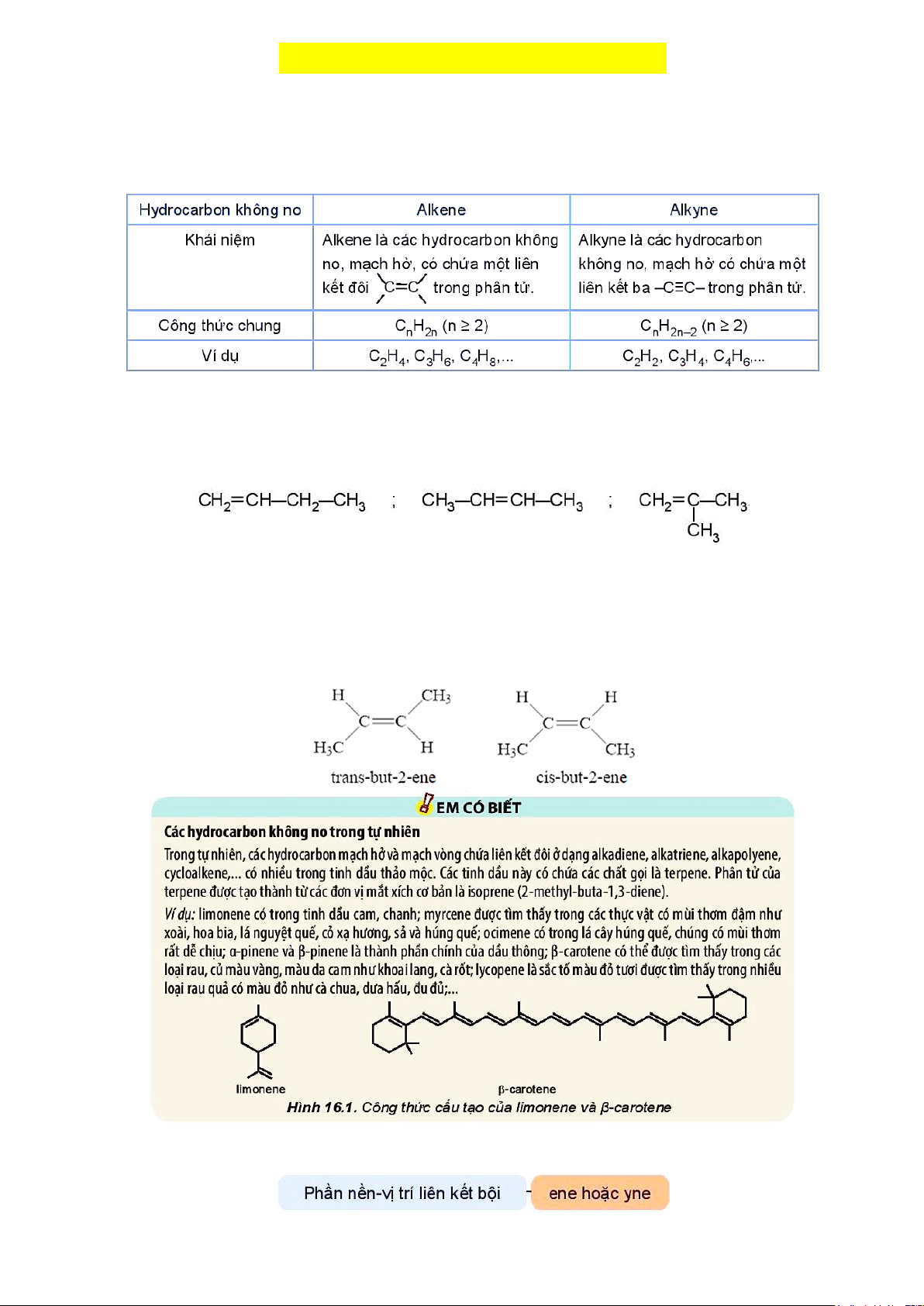 - Hydrocarbon không no là những hydrocarbon trong phân tử có chứa liên kết đôi, liên kết ba (gọi chung