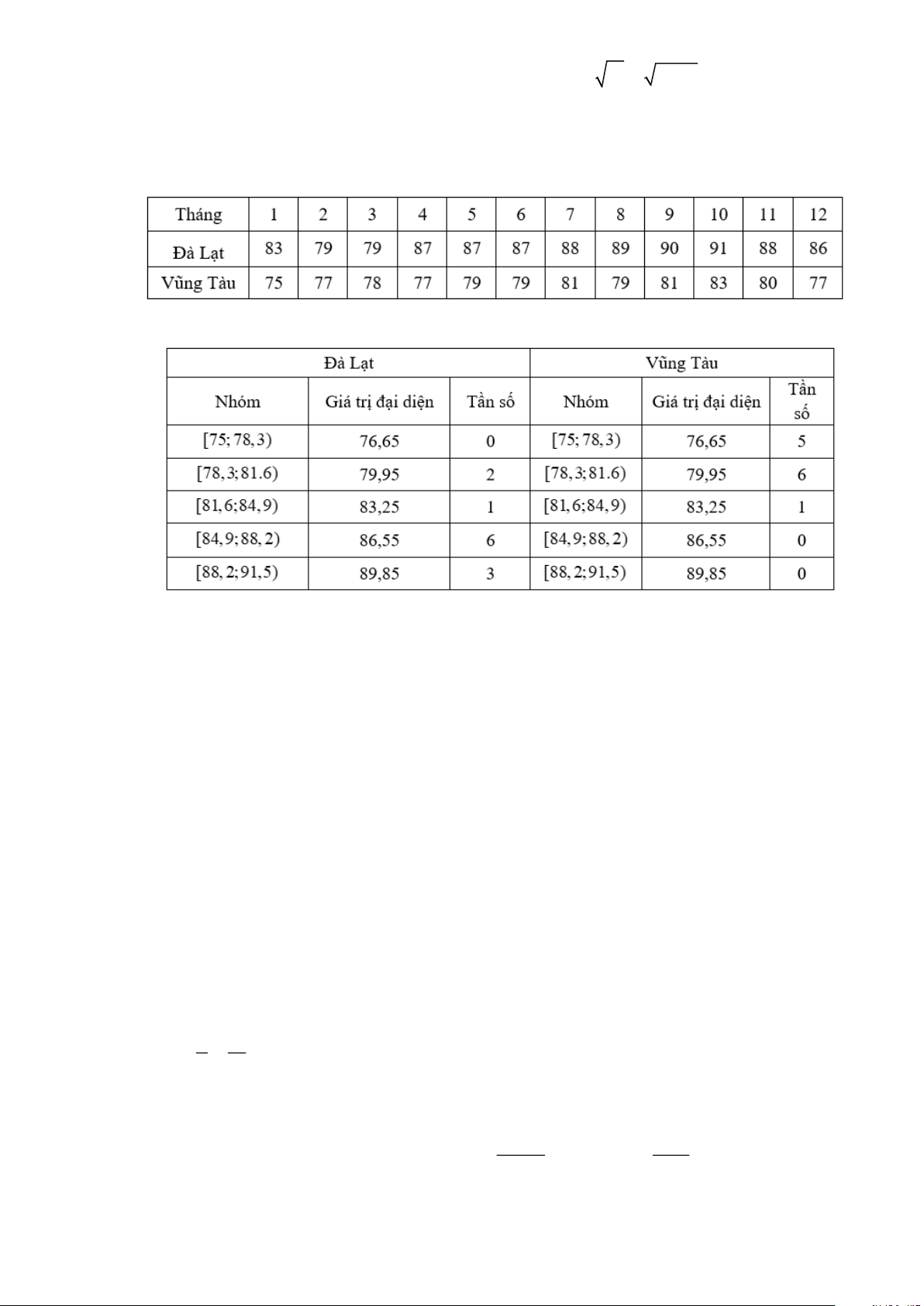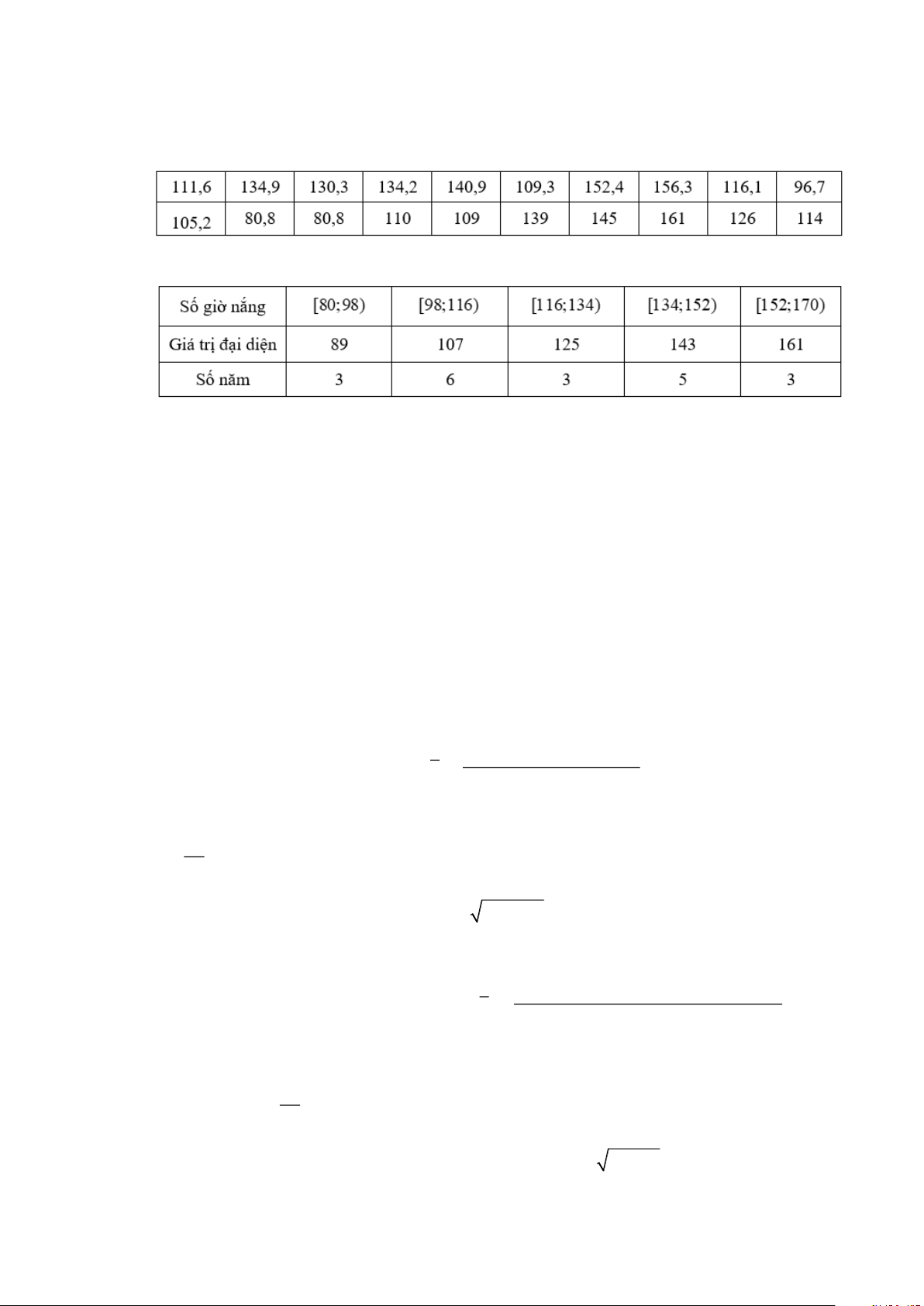 1.145 +1.175 +1.205 + 8.235 + 7.265 + 2.295 Số trung bình: x = = 242,5 X 20 2 2 2 2 2 2 1.145 1.175 1.205 8.235 7.265 2.295 Độ lệch chuẩn: 2 + + + + + = − 242,5 35,34 X 20