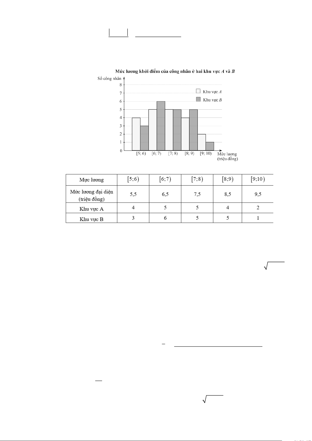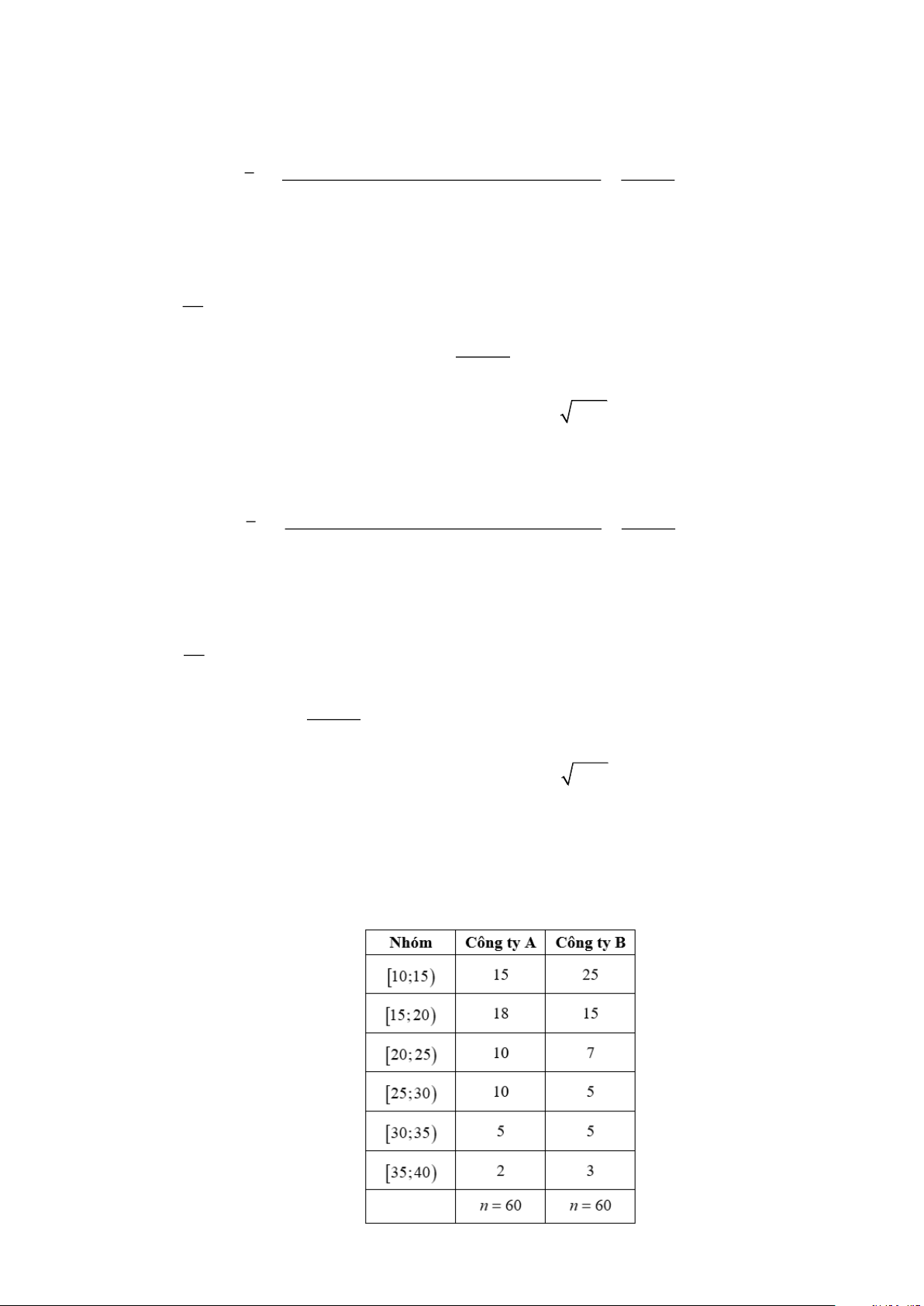 Phương sai của mẫu số liệu ghép nhóm là 1 2 S = + + + + − = A ( 2 2 2 2 2 4.5,5 5.6,5 5.7,5 4.8,5 2.9,5 ) 2 (7,25) 1,5875 20