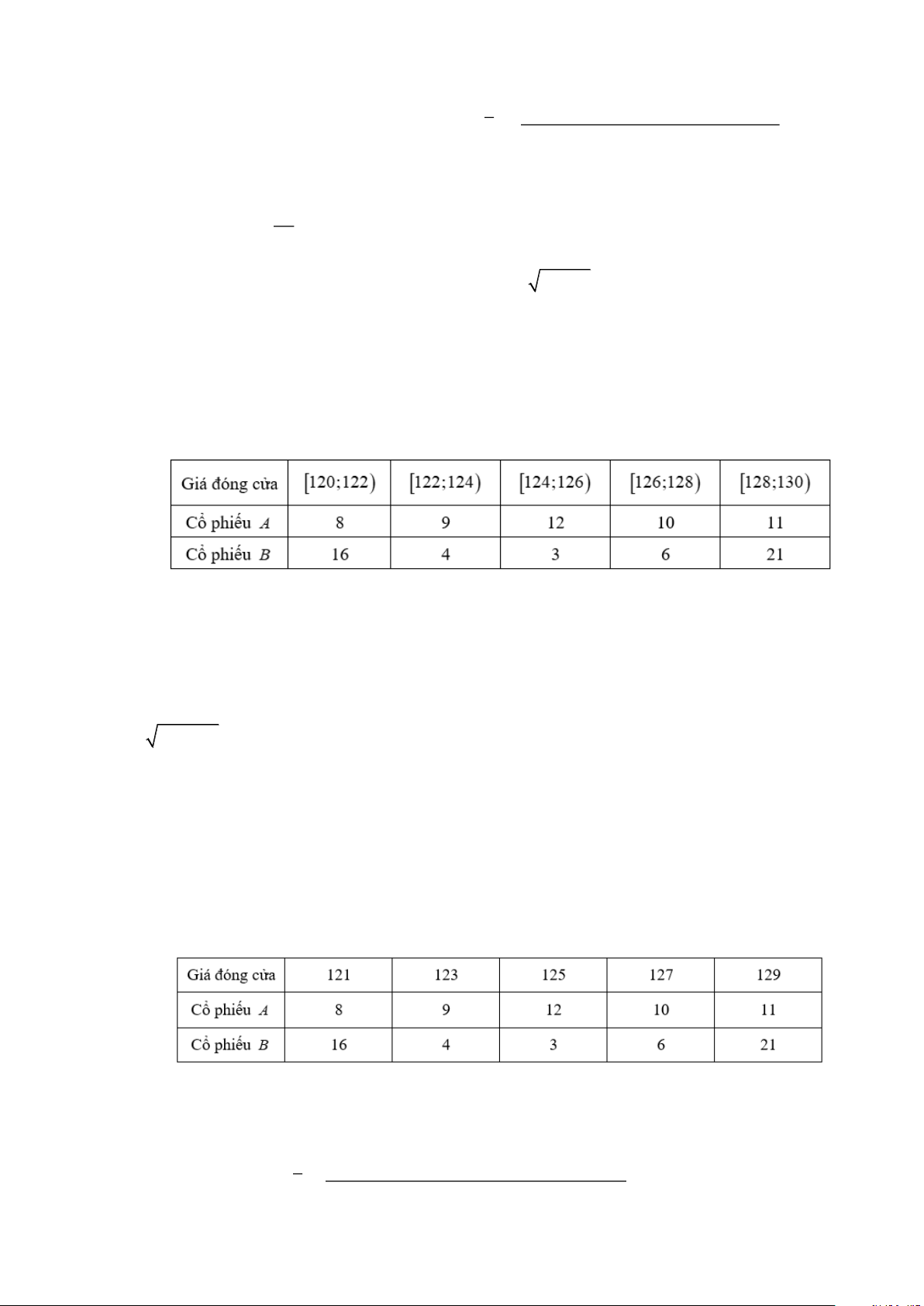 Câu 9: Giá đóng cửa của một cổ phiếu là giá của cổ phiếu đó cuối một phiên giao dịch. Bảng sau