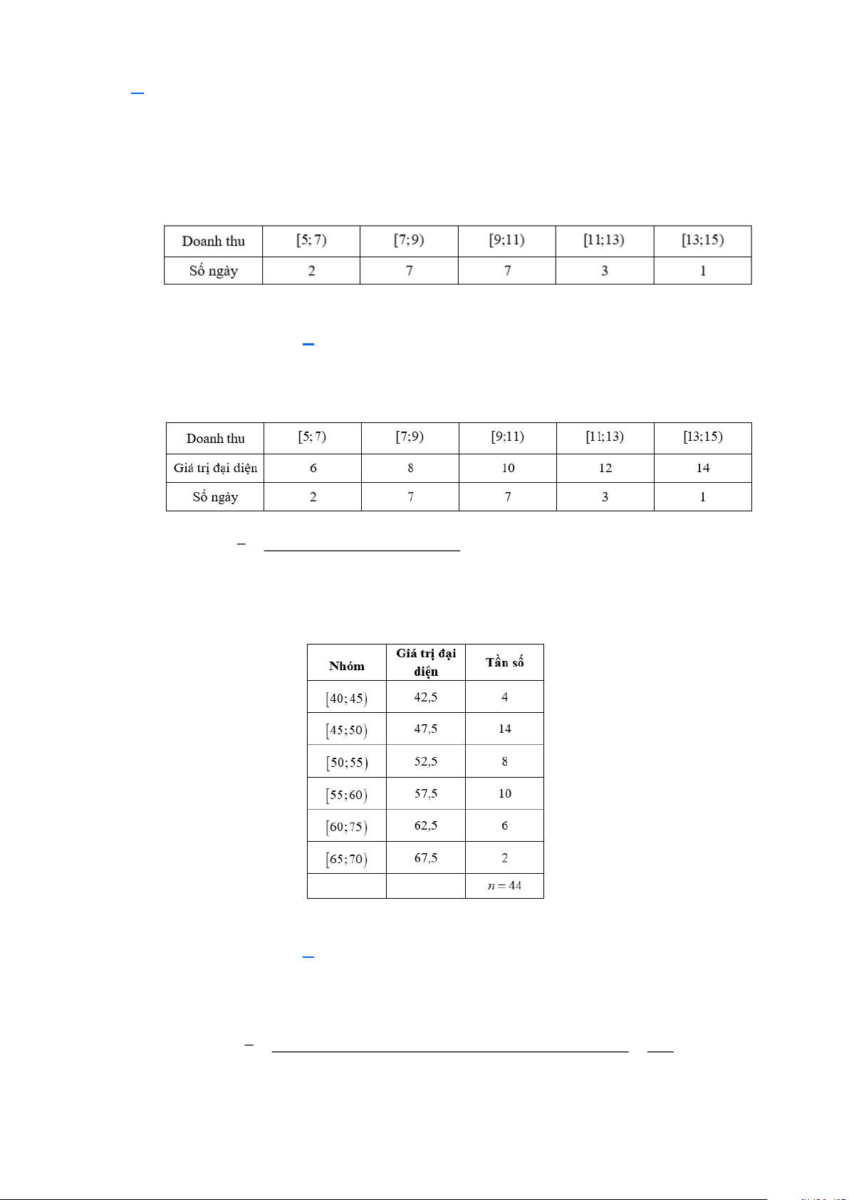 Câu 5: Một siêu thị thống kê số tiền (đơn vị: chục nghìn đồng) mà 44 khách hàng mua hàng ở siêu thị