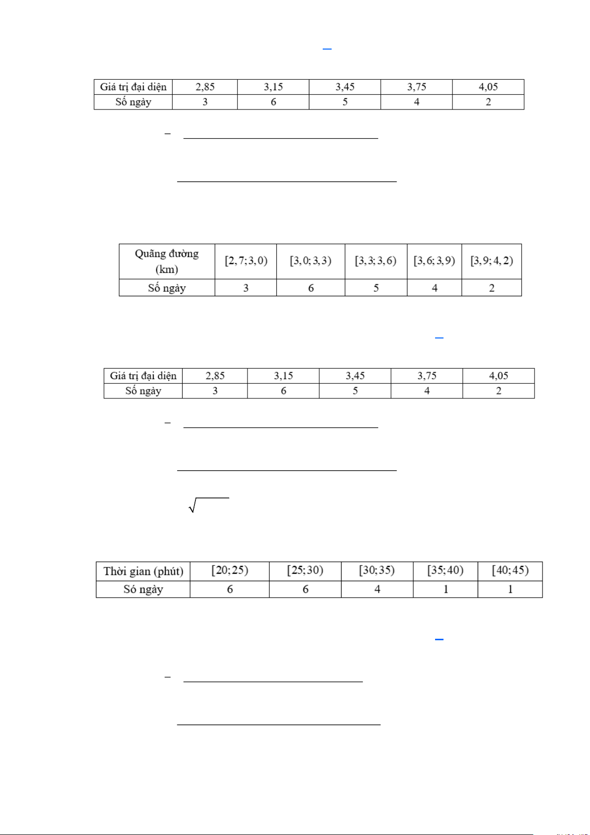 km ) của bác Hương trong 20 ngày được thống kê lại ở bảng sau: