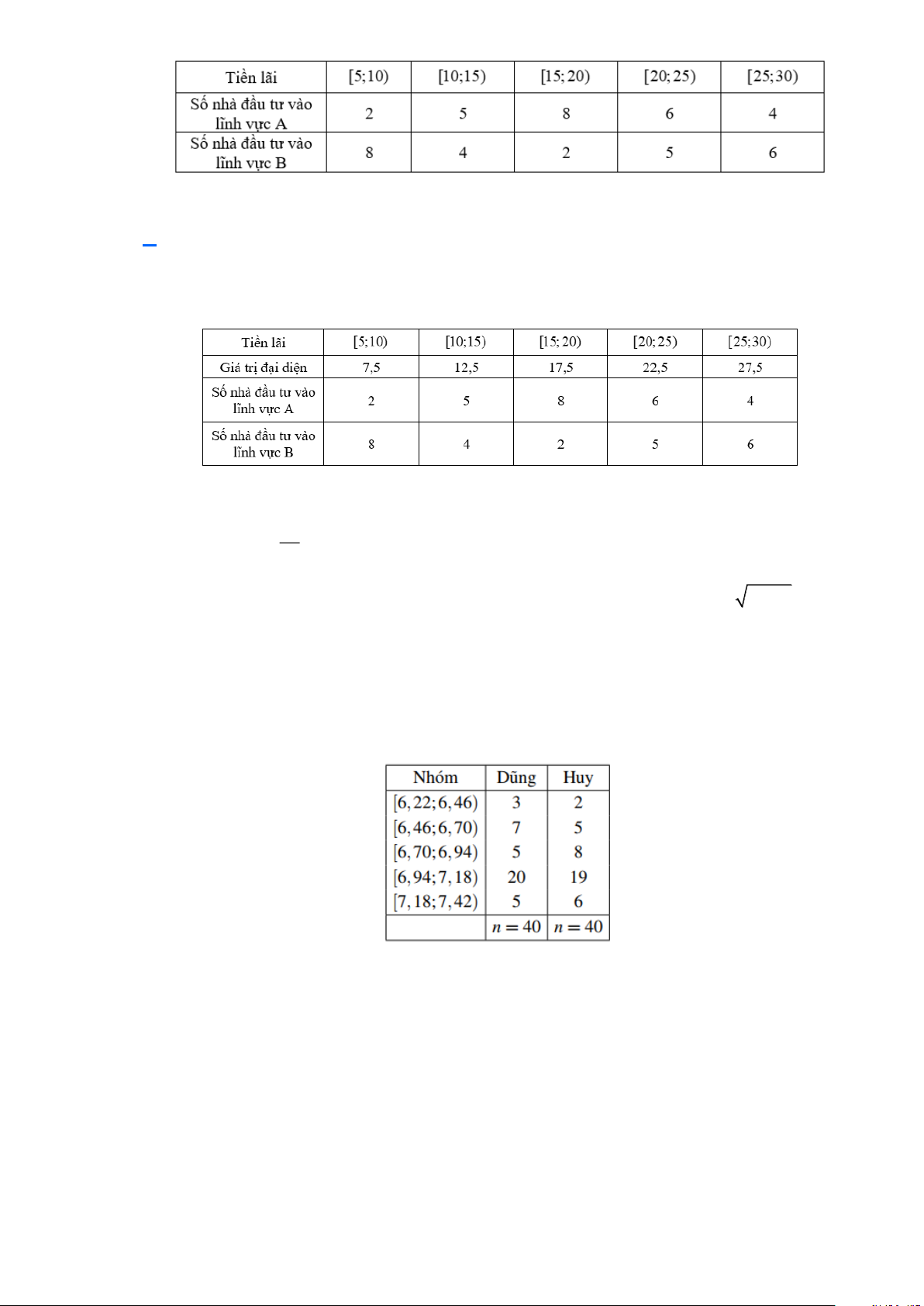 Câu 12: Người ta ghi lại tiền lãi (đơn vị: triệu đồng) của một số nhà đầu tư (với số tiền đầu tư như