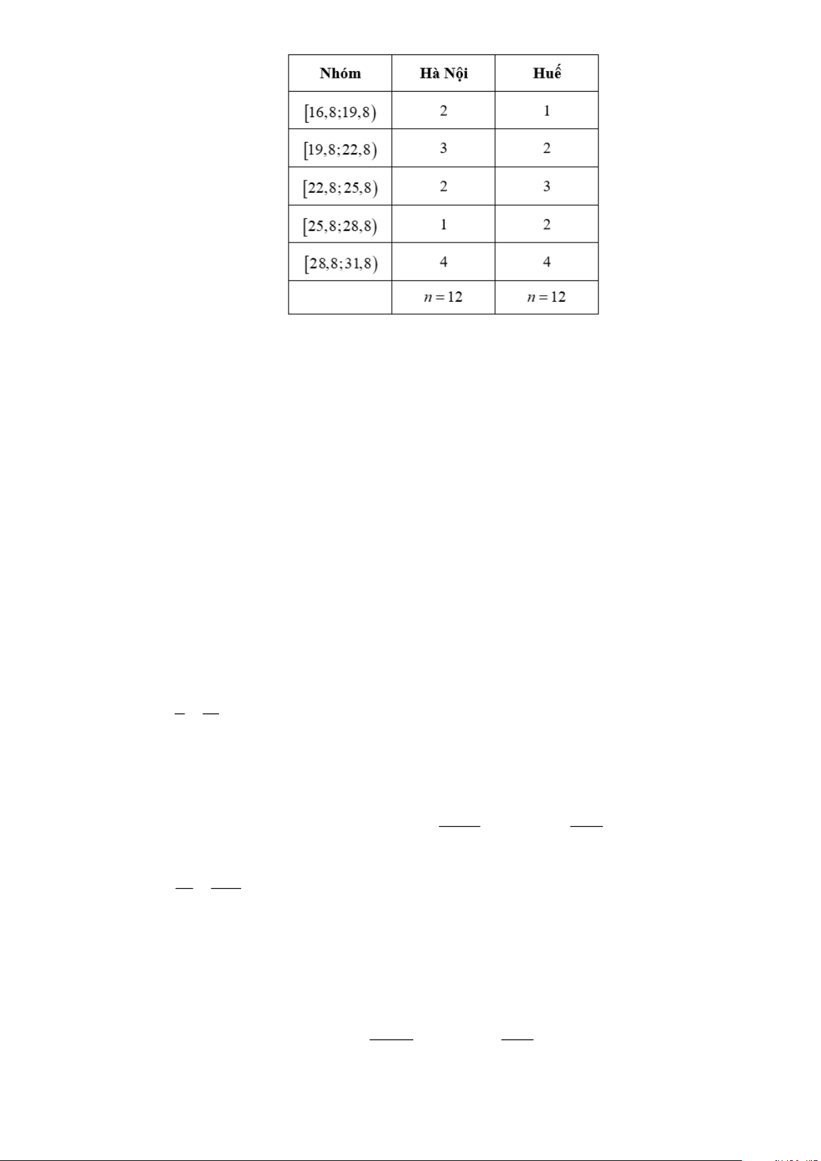 mỗi phương pháp. Cỡ mẫu của hai mẫu số liệu thống kê là N = 40 . Ta có bảng tần số ghép
