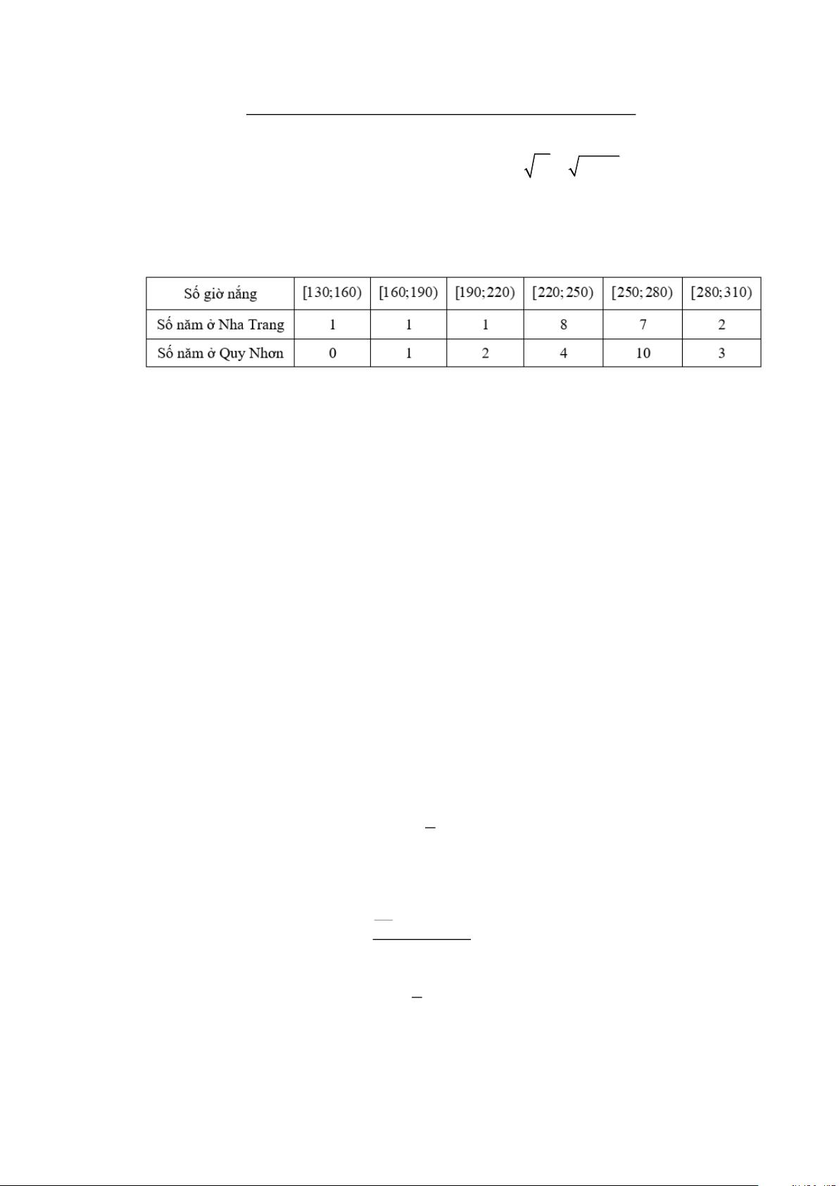 y là mẫu số liệu gốc về số giờ nắng trong tháng 6 trong 20 năm của 1 2 50