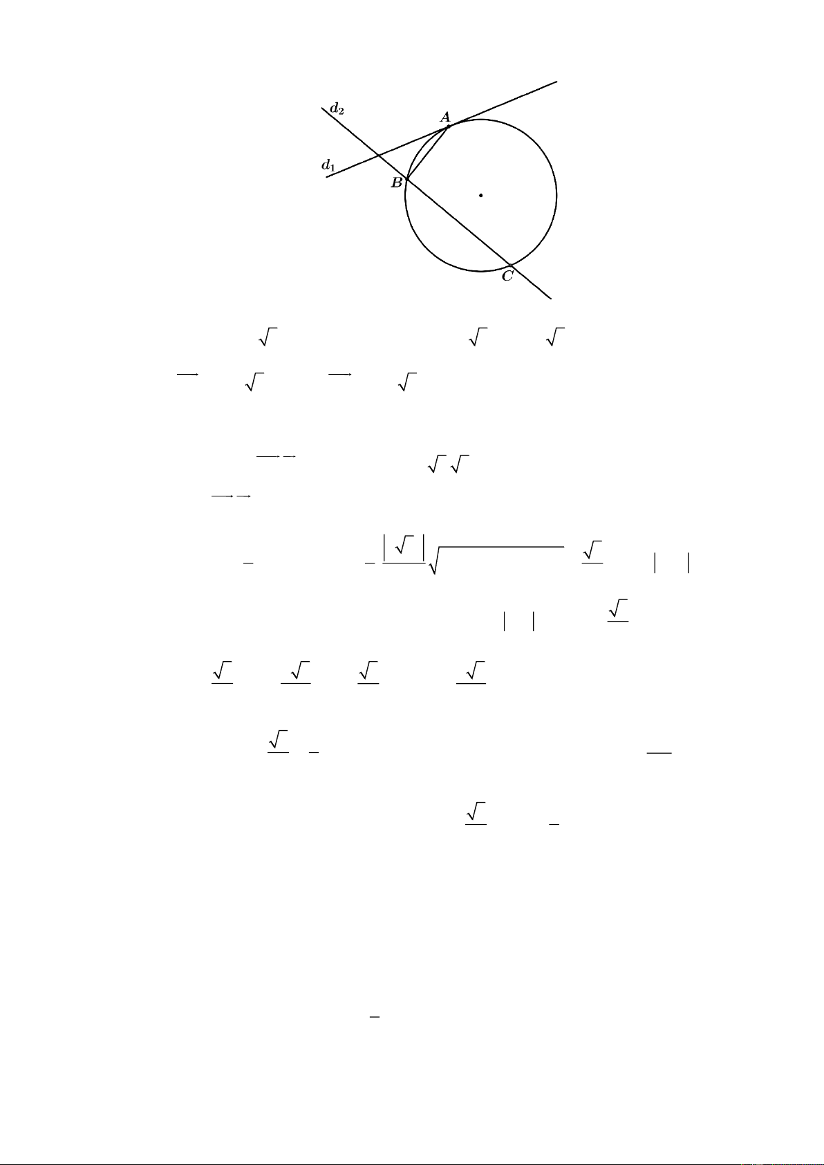 (C) là đường tròn tiếp xúc với d tại A, cắt d tại hai điểm B,C sao cho tam giác ABC vuông tại . B 1 2 3