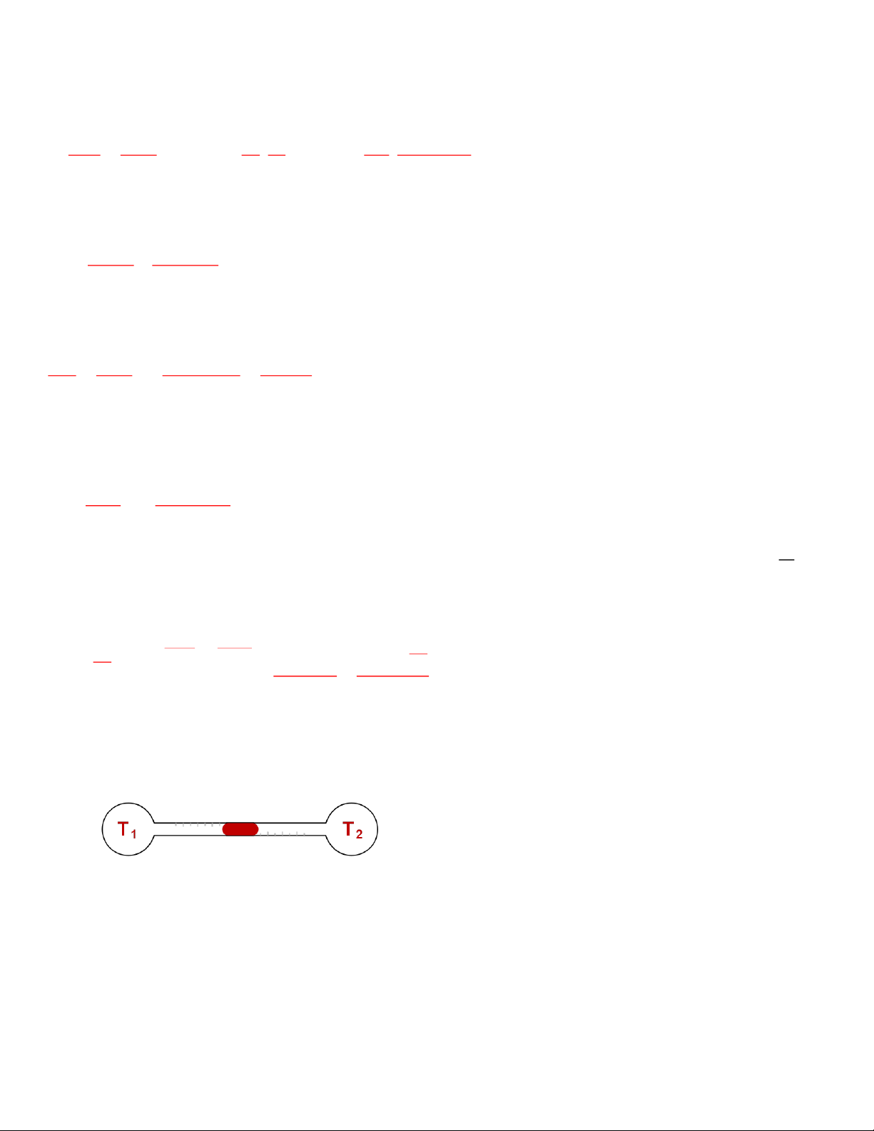 𝑝1.𝑆𝑙 = 𝑝2.𝑆(𝑙 +𝛥𝑙) = 𝑝2.𝑆(𝑙 −𝛥𝑙) ⇔ 2.30 = 𝑝2(30+2) = 𝑝2(30−2) 𝑇 ⏟ 1 𝑇2 𝑇1 290 ⏟ ⏟ 𝑇 2 290 (1) (2) (3) (1) & (3) ⇒ 𝑝 Từ { 2 = 2,14(𝑎𝑡𝑚) ( ⇒ 𝛥𝑇 = 𝑇 1) & (2) ⇒ 𝑇 2 − 𝑇1 = 41(𝐾) 2 = 331(𝐾)