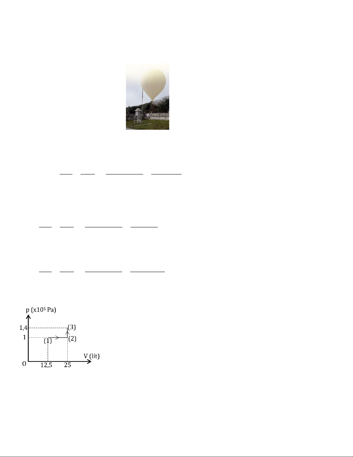 Câu 4: Trong một khu hội chợ người ta bơm một quả bóng có thể tích 200 lít ở nhiệt độ 270C trên mặt đất. Sau