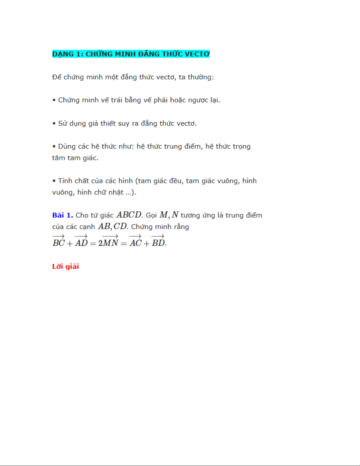 Các Dạng Toán Bài Tích Của Một VecTơ Với Một Số Giải Chi Tiết