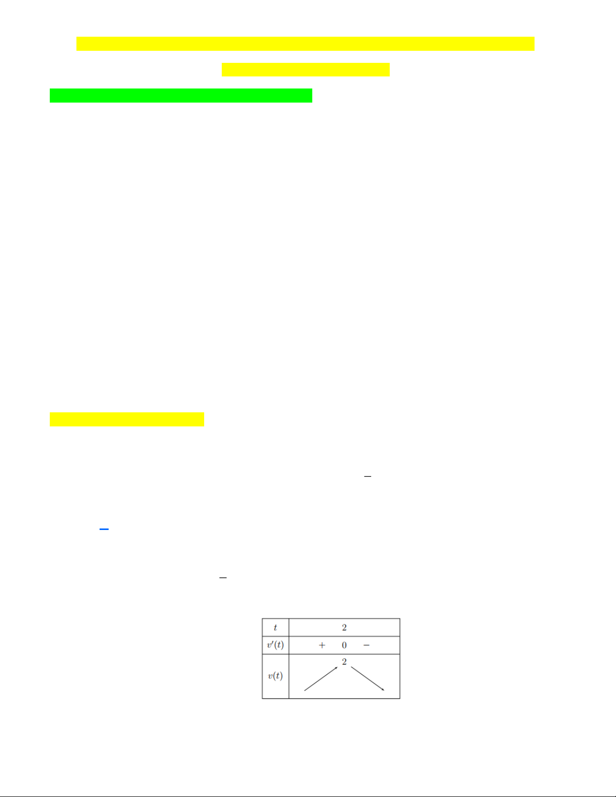 = 2t − t . Suy ra v'(t) = 2 −t và v'(t) = 0 t = 2. 2 Bảng biến thiên