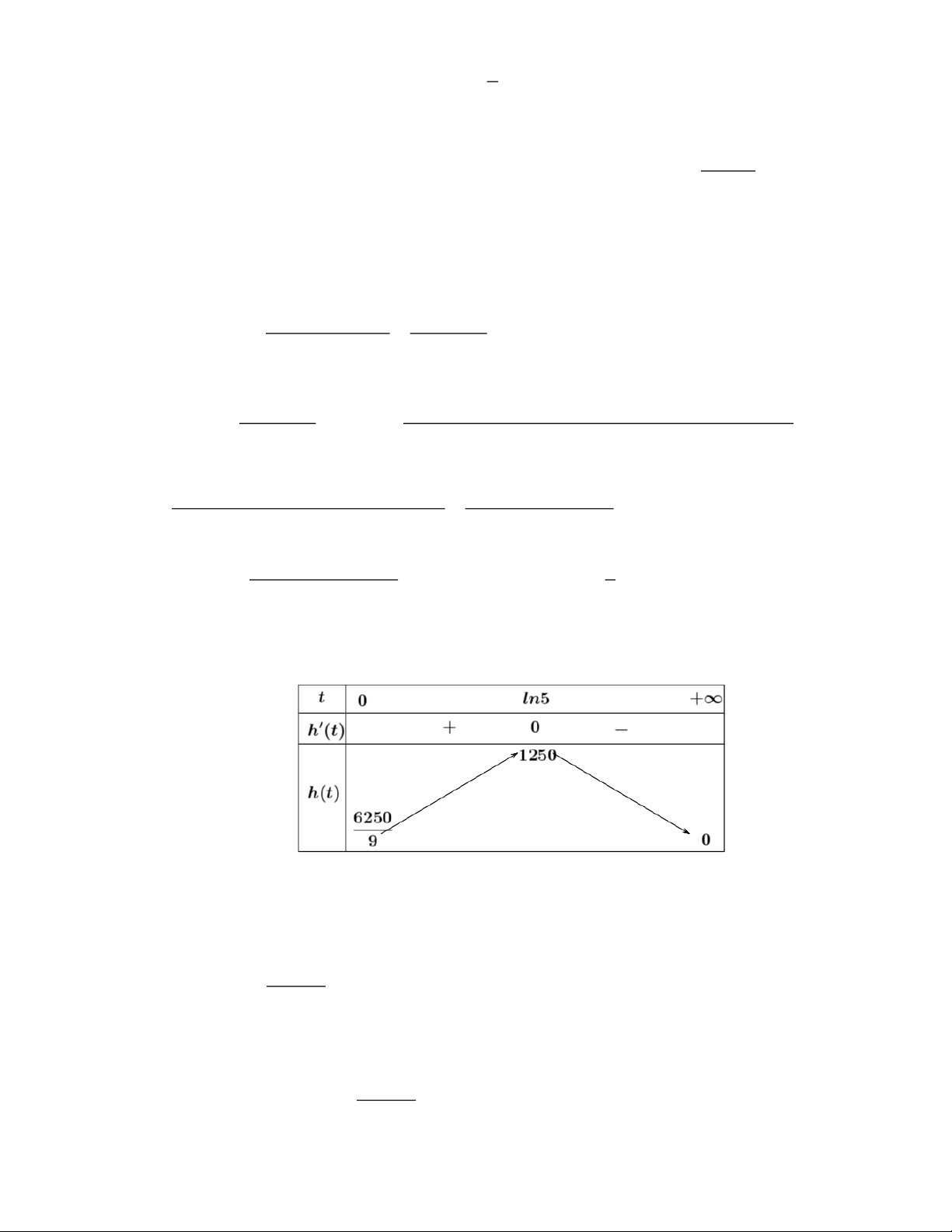 − e ).(1+ 5 −t e ).25000 −t e Đặt h(t) = ( có h (t) = 4 1+ 5 −t e )2 (1+5 −t e ) 25 − 000 −t e (1+ 5 −t e )(1+ 5 −t e −10 −t e ) 25 − 000 −t e (1− 5 −t e ) = ( = 1+ 5 −t e )4 (1+5 −t e )3 25 − 000 −t e (1− 5 −t e ) h(t) −t −t 1 = 0