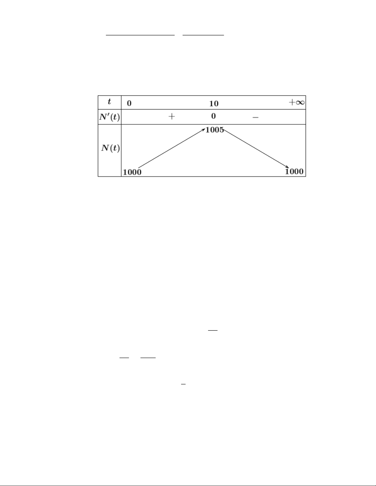 Trên khoảng (0;+) hàm số N (t) đạt giá trị lớn nhất bằng 1005 tại t =10.