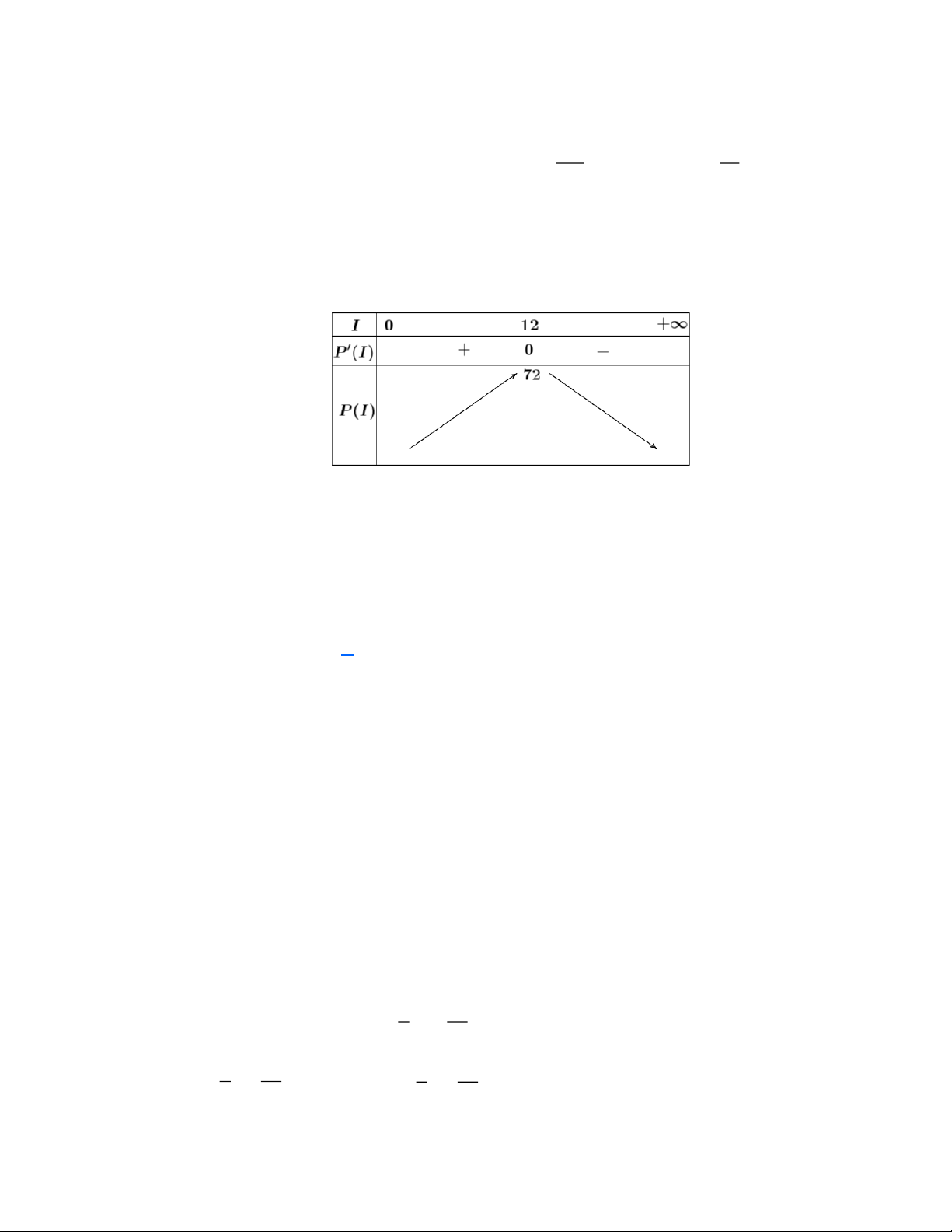 P = 12I − 0,5I với I 0 có đạo hàm P' = 12 − I ; P' = 0 I =12. Bảng biến thiên: