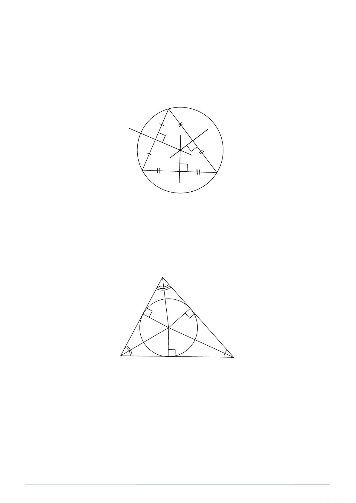 - Tâm đường tròn ngoại tiếp tam giác là giao điểm của ba đường trung trực của tam giác.