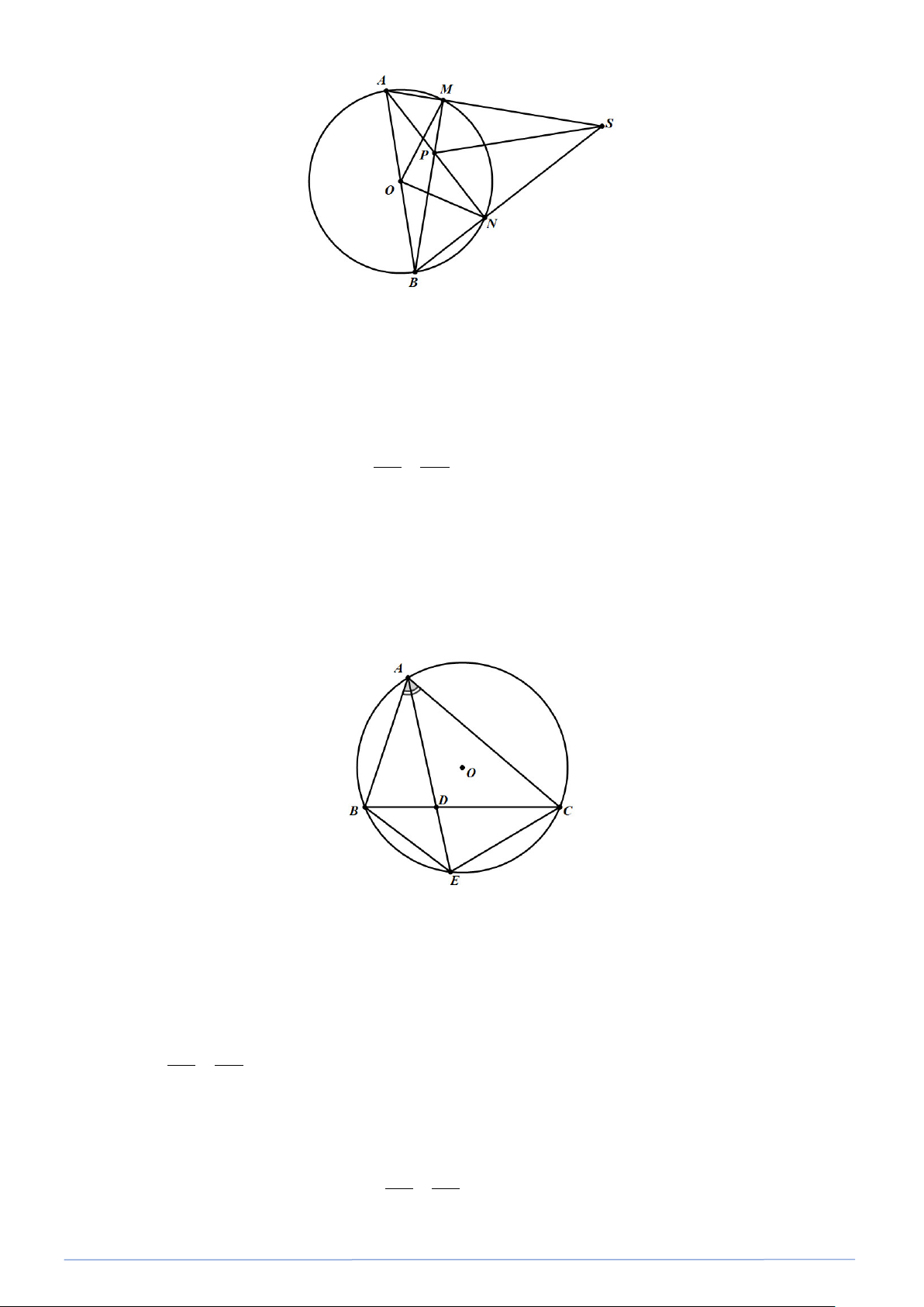 BDA BFA (góc nội tiếp cùng chắn AB ). Do đó BC ∆ D∽ BE ∆ F (g.g) BC BD ⇒ = ⇒ BC⋅BF = BD⋅BE BE BF