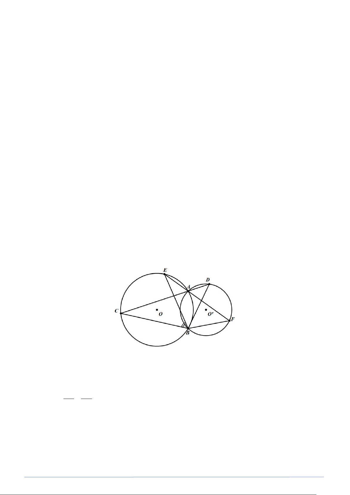 b) Một cát tuyến qua A cắt (O) tại E và (O ') tại F . Chứng minh rằng: AC.BF = A . D BE Lời giải E 1 A O O' 1 F 1 1 C D B a) Ta có: