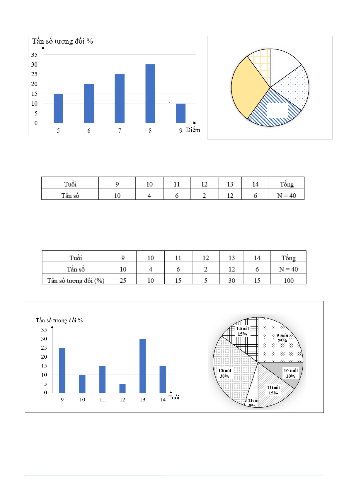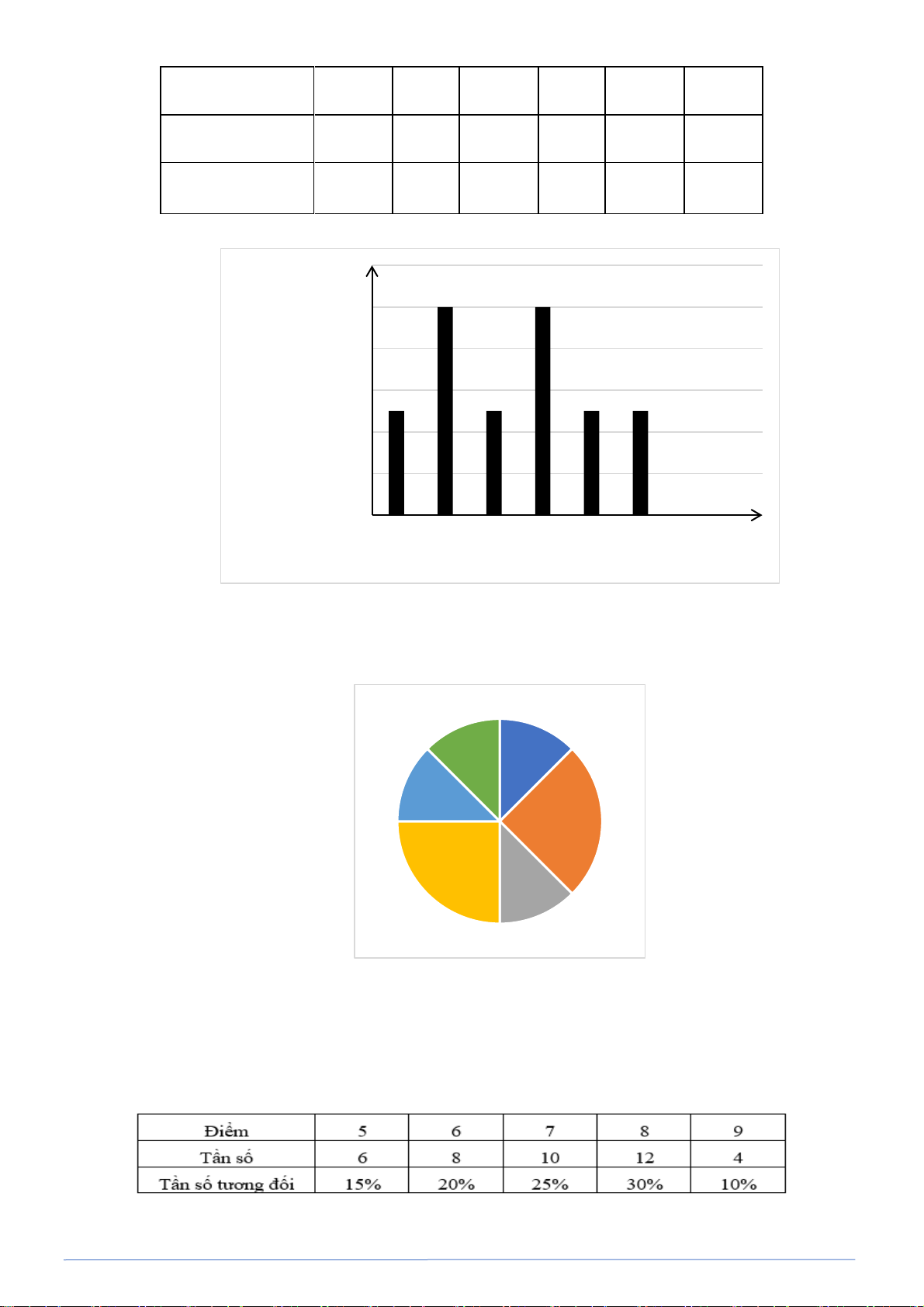 PHÂN LOẠI VÀ GIẢI CHI TIẾT CÁC DẠNG TOÁN 9 Biểu đồ cột: Biểu đồ quạt tròn: Điểm 9 Điểm 5 10% 15% Điểm 8 Điểm 6 30% 20% Điểm 7 25%