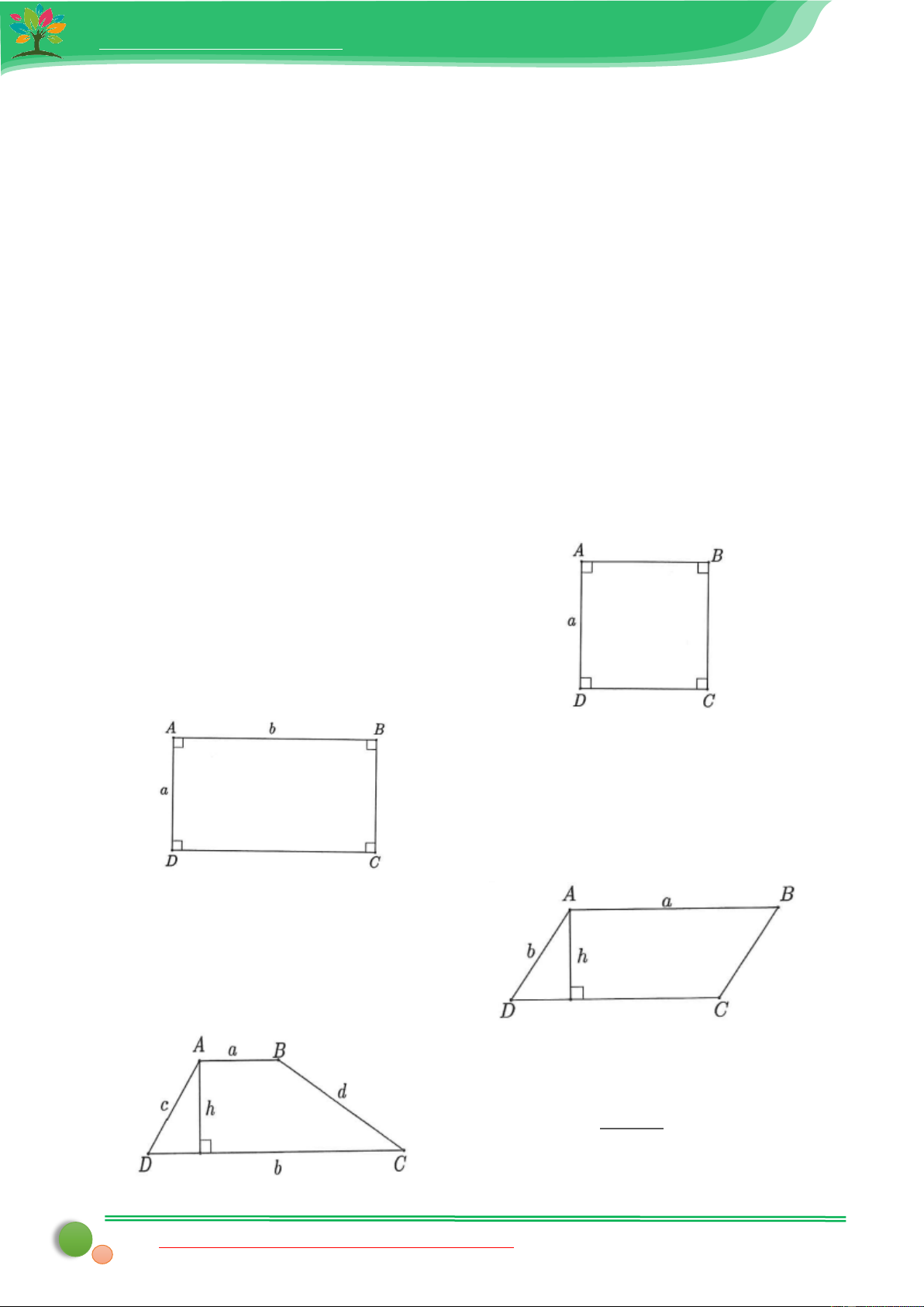 Chu vi P = a + b + c + d ; ( + ) Diện tích = a b h S 2