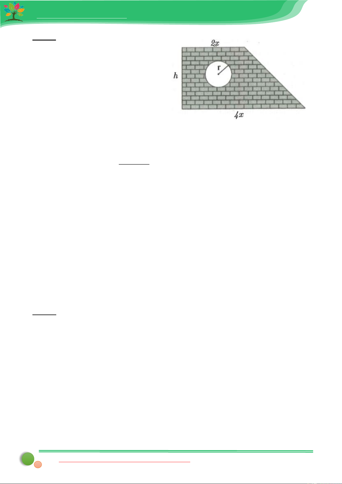 Bài 9: Sân nhà bác Nga có mảnh sân hình chữ nhật có các kích thước là x −5 (m) và x + 5 (m). Bác