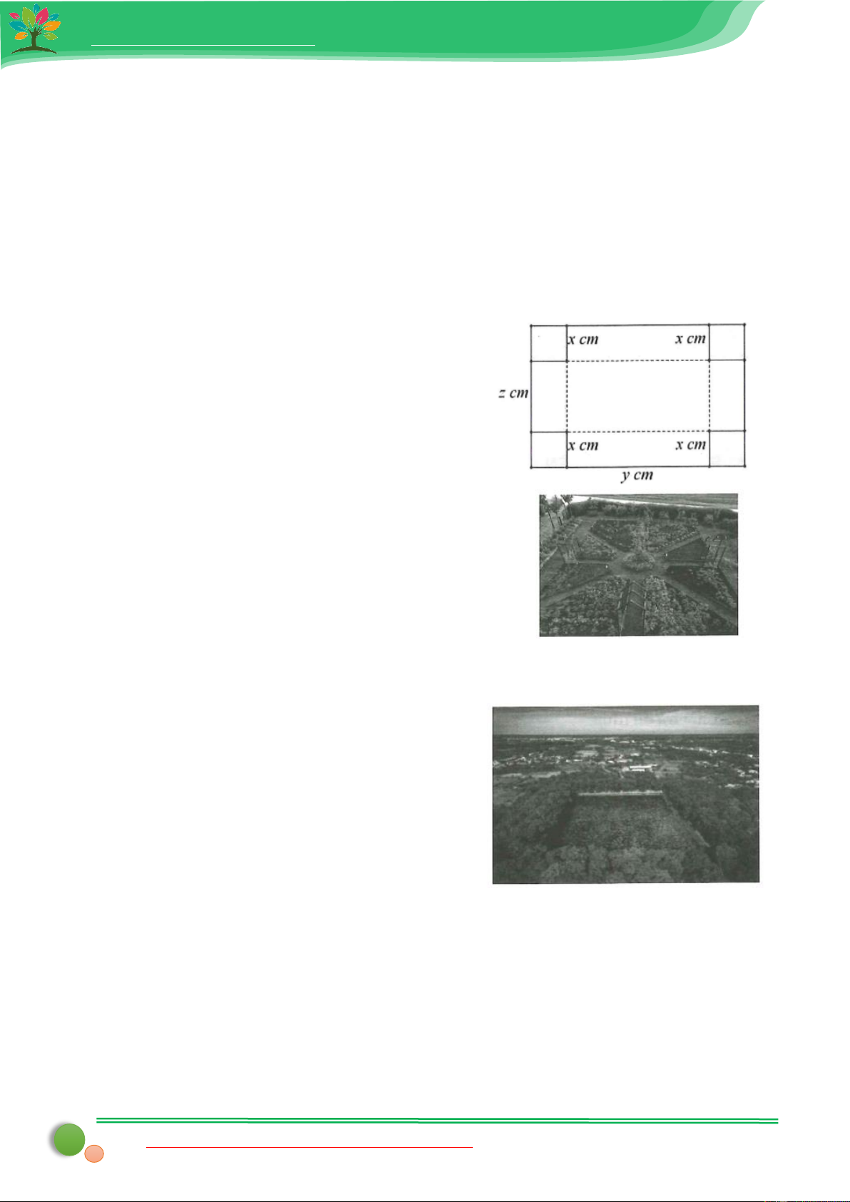 Bài 3: Nhà bạn Hà có mảnh vườn hình vuông dùng trồng hoa, có lối đi xung quanh rộng x (m). Hãy