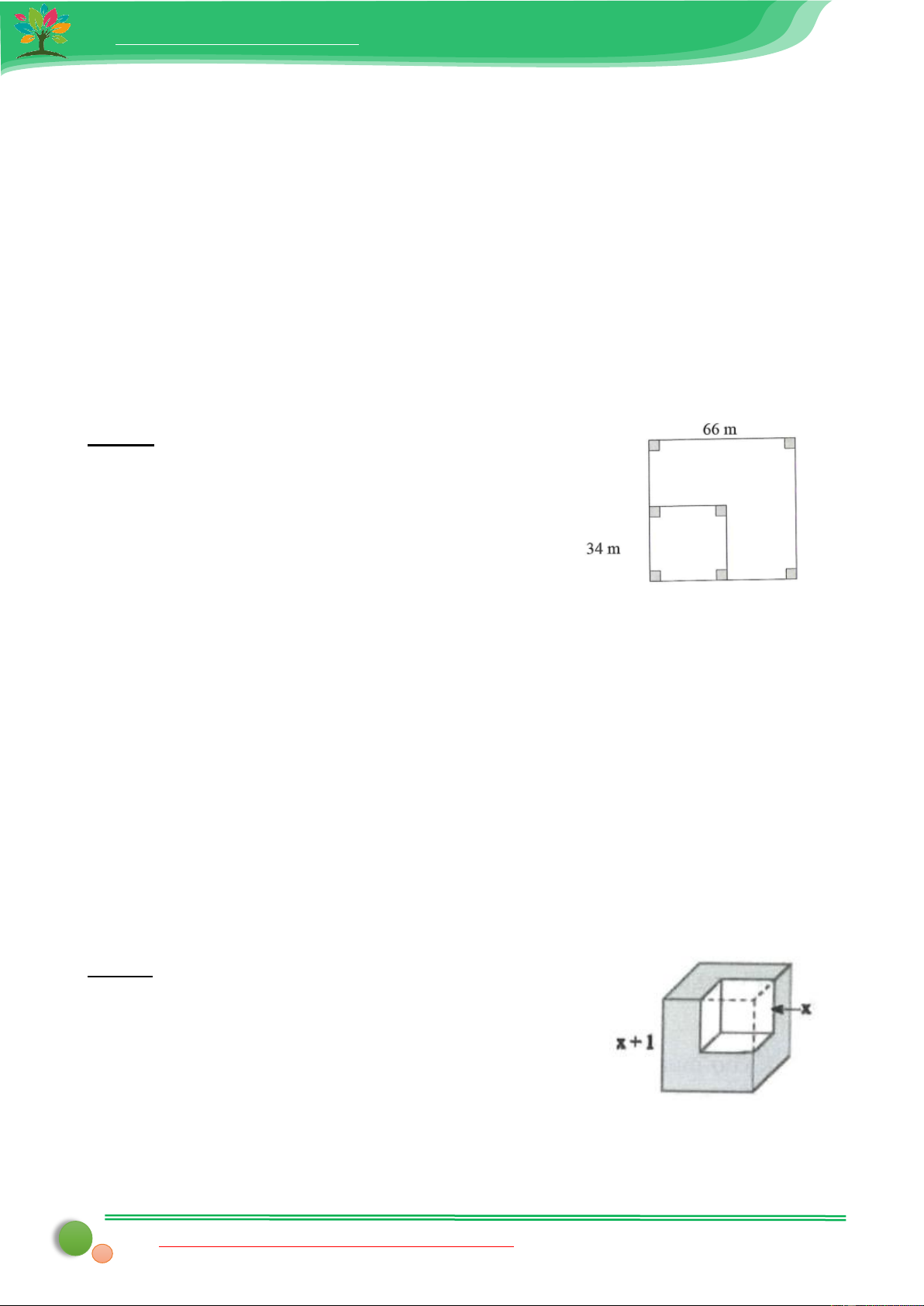 Bài 1: Cho mảnh đất hình chữ nhật có chiều dài là x mét, chiều rộng là x − 2 mét. Người ta muốn