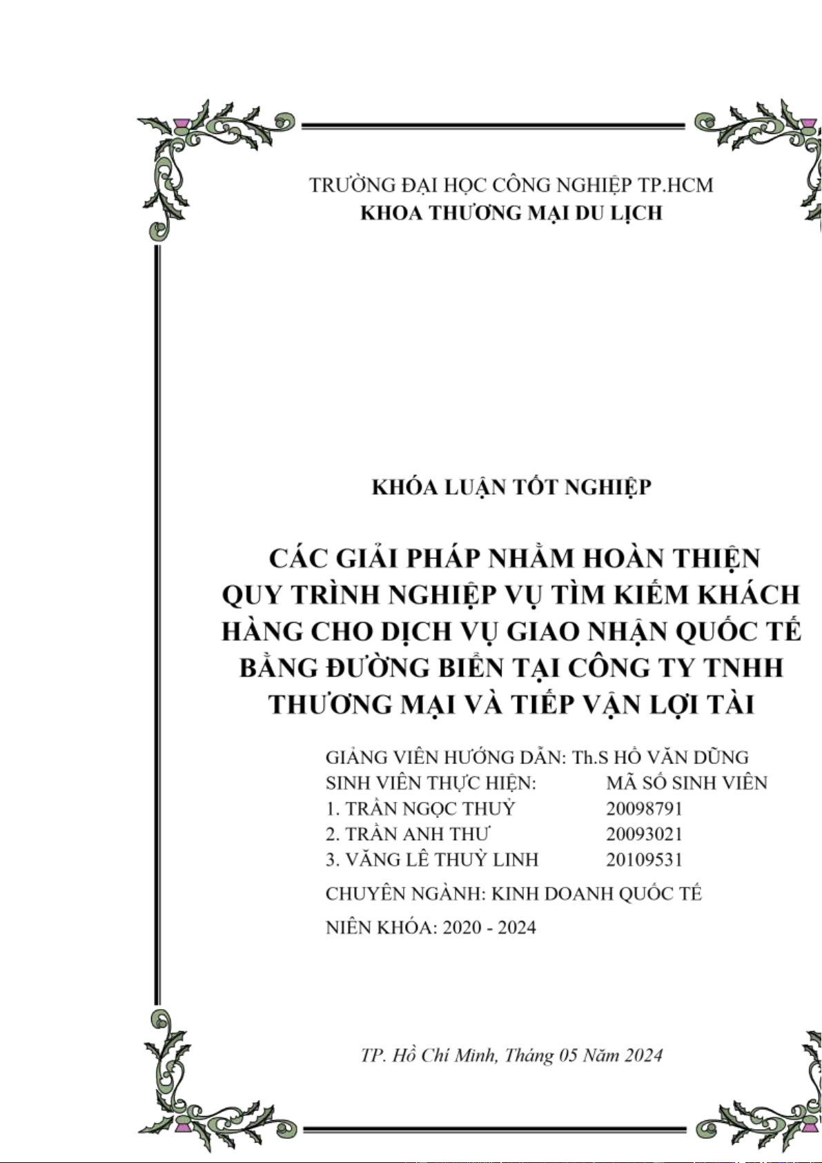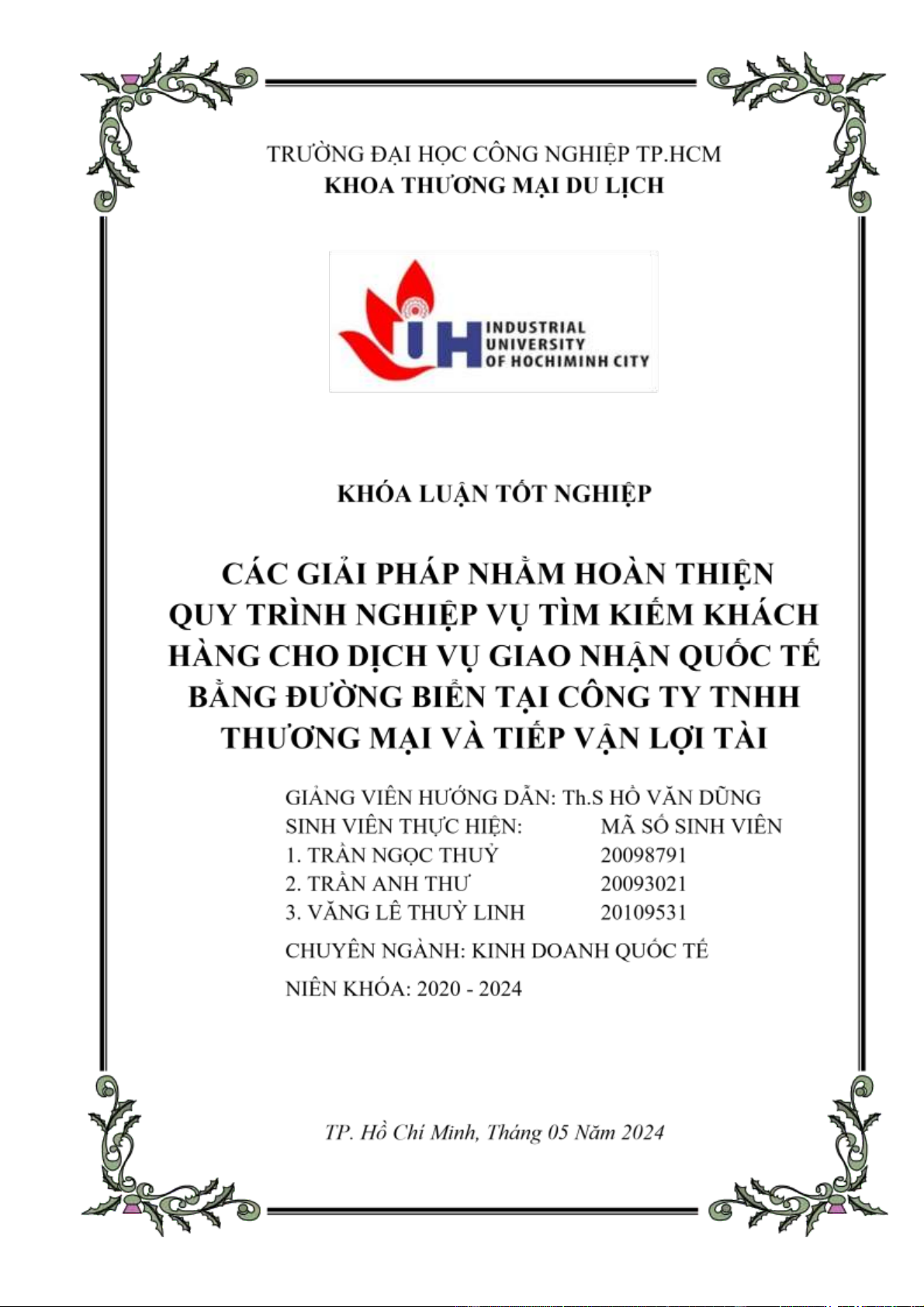 Thương mại và Tiếp vận Lợi Tài đã cho phép chúng tôi thực hiện đề tài luận văn tại công
