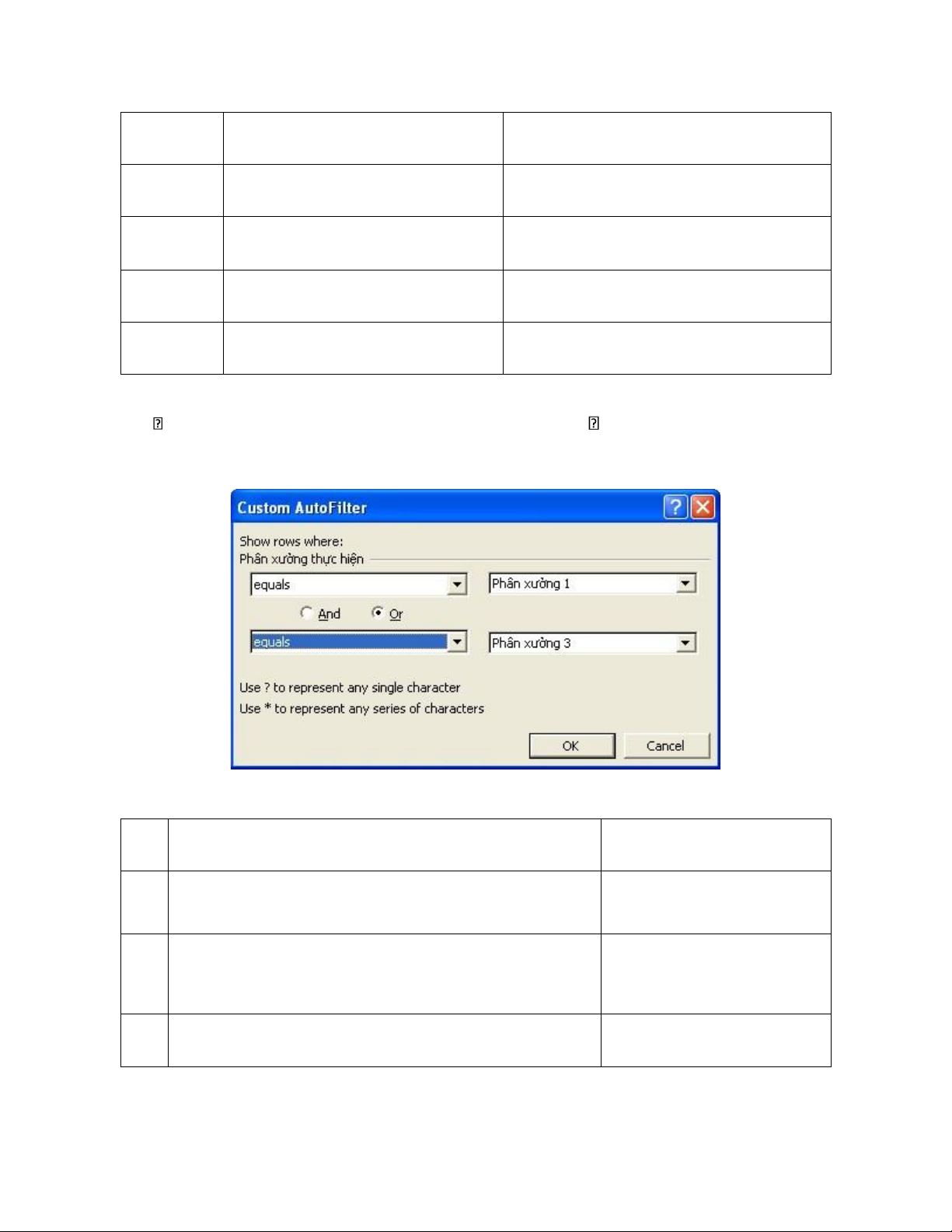 Hình 2.10: Hộp thoại lọc tự động Autofilter khi chọn Custom TT Thao tác Giải thích