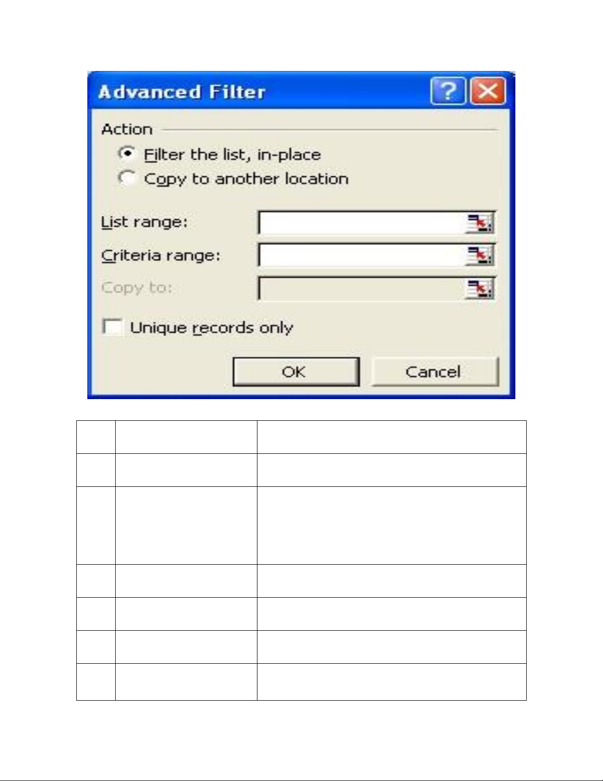 Ý nghĩa các mục trong hộp thoại Advanced Filter như sau : lOMoAR cPSD| 61152560