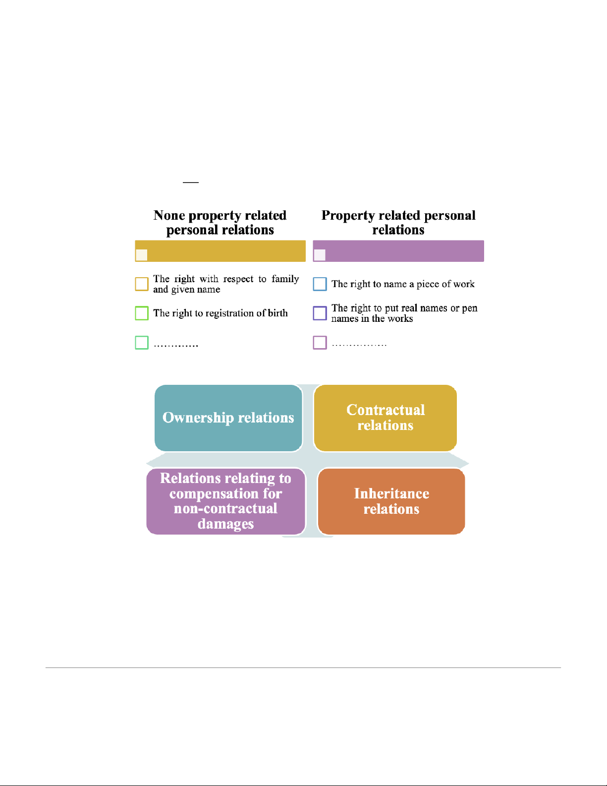 - Quan hệ tài sản là các mối quan hệ liên quan đến tài sản giữa các cá nhân. Bao gồm: