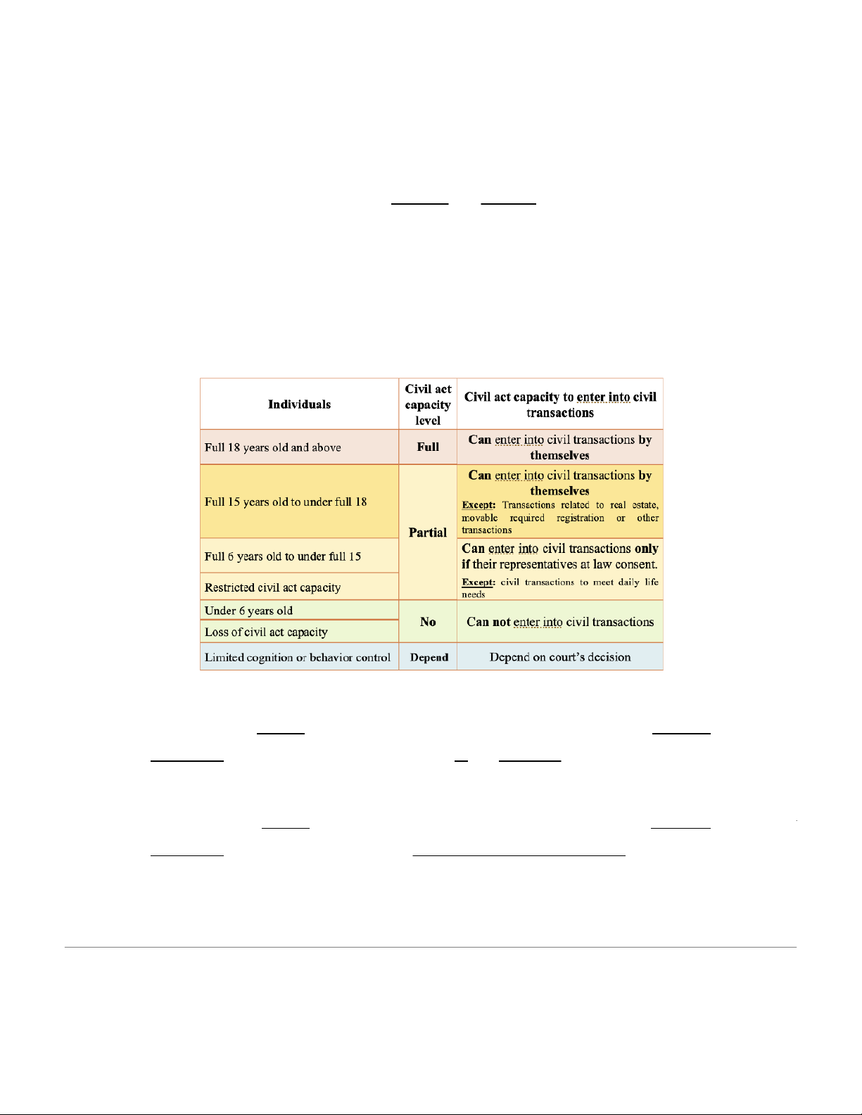 - Tuổi tác + Khả năng nhận thức → Năng lực hành vi dân sự.