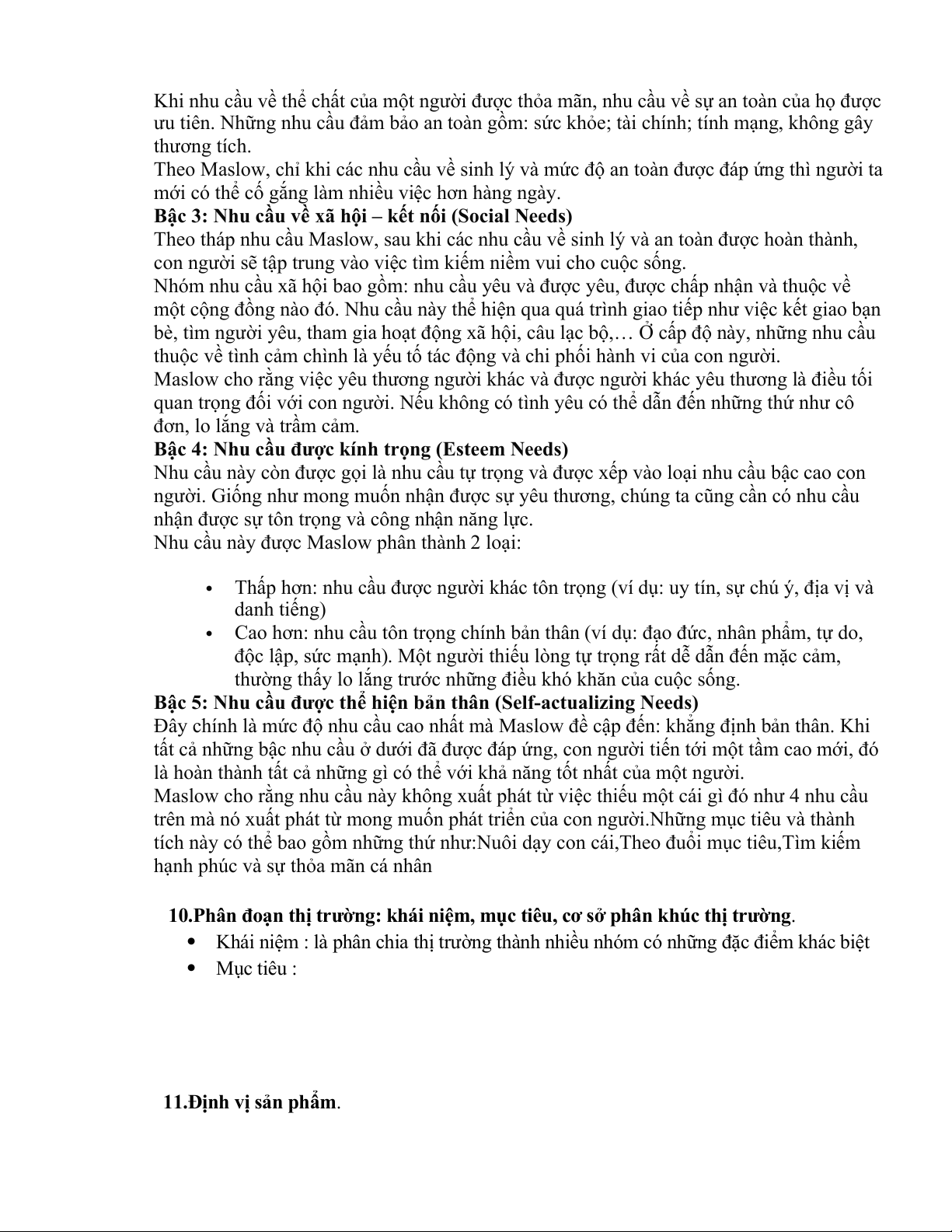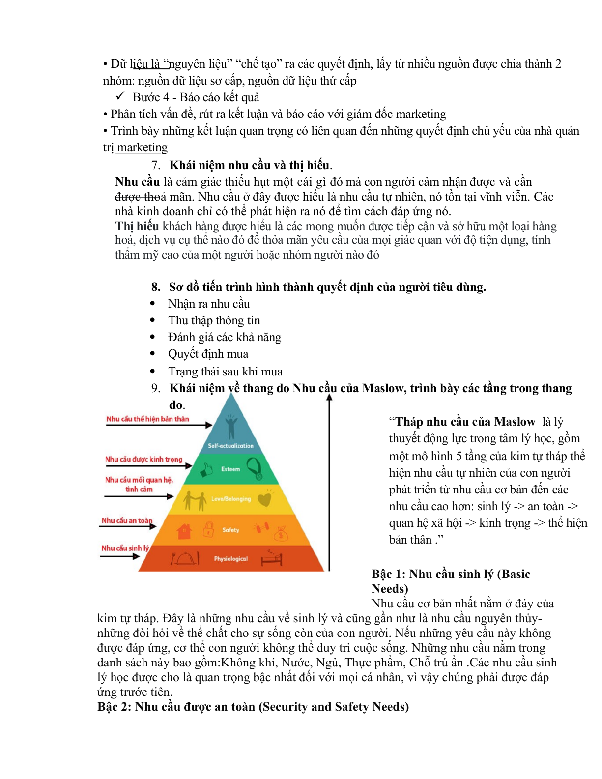 9. Khái niệm về thang đo Nhu cầu của Maslow, trình bày các tầng trong thang đo.