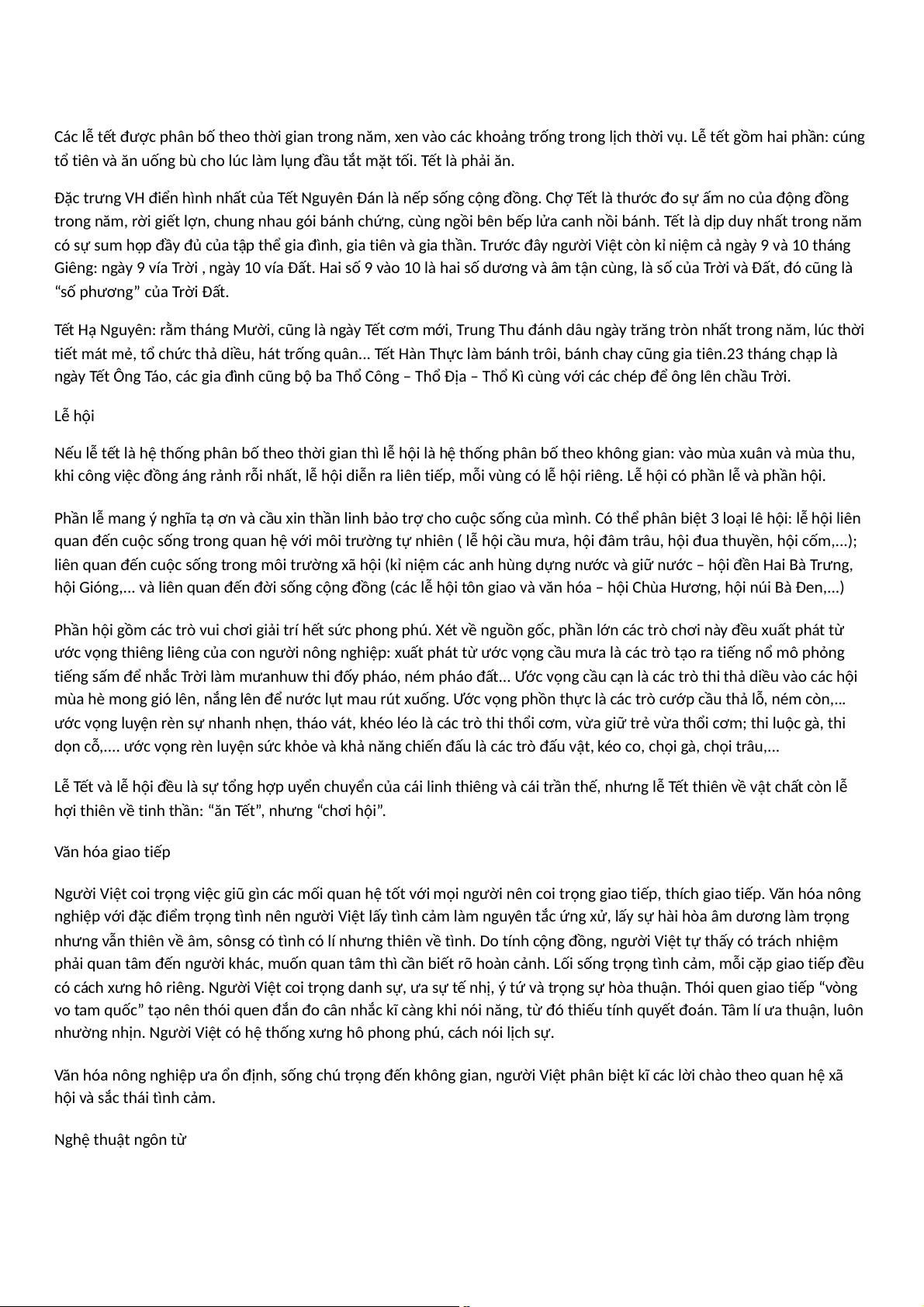 hợi thiên về tinh thần: “ăn Tết”, nhưng “chơi hội”. Văn hóa giao tiếp