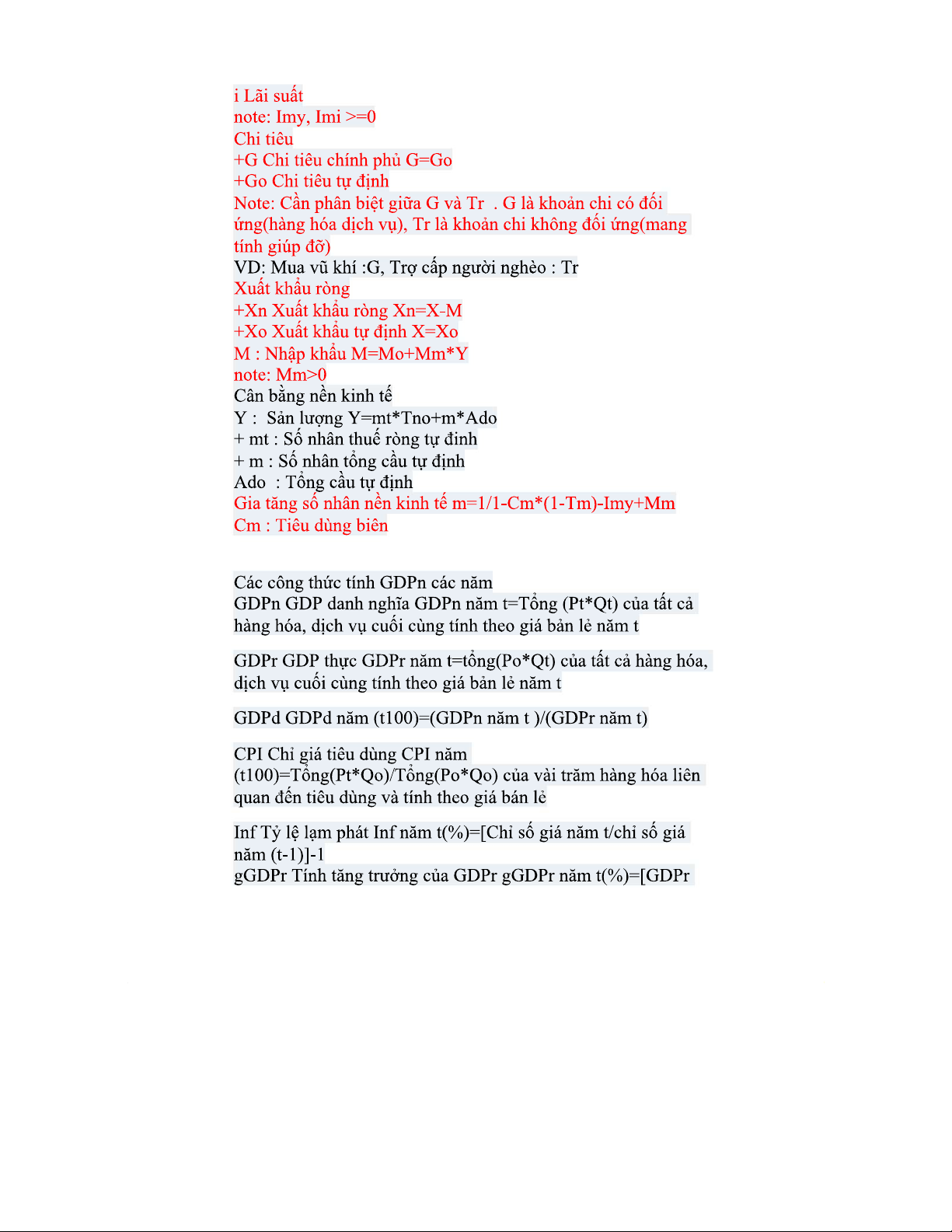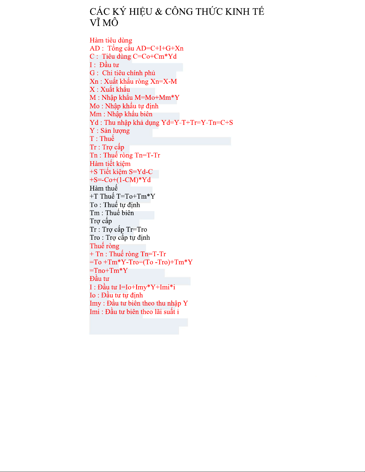 Các Ký Hiệu và Công Thức Kinh Tế Vĩ Mô: Tài Liệu Ôn Tập
