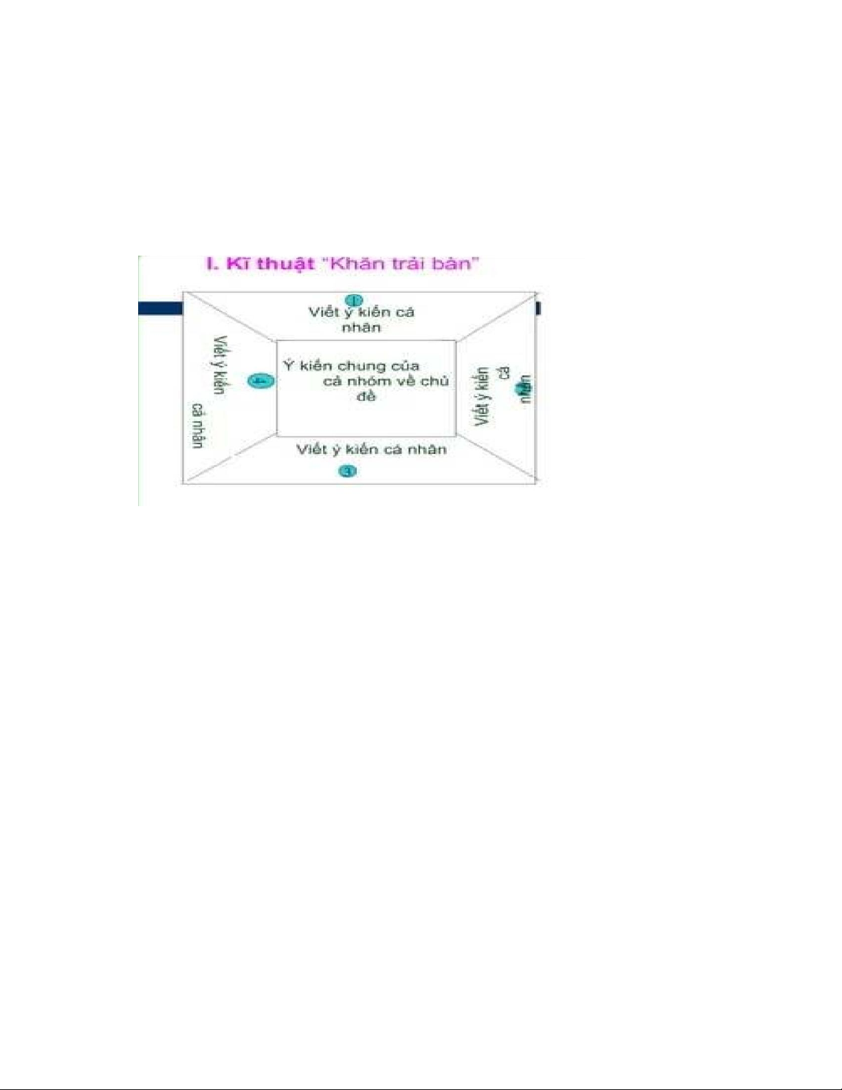 + Mỗi cá nhân làm việc độc lập và viết ý tưởng vào phần giấy của mình trên “khăn trải bàn”.