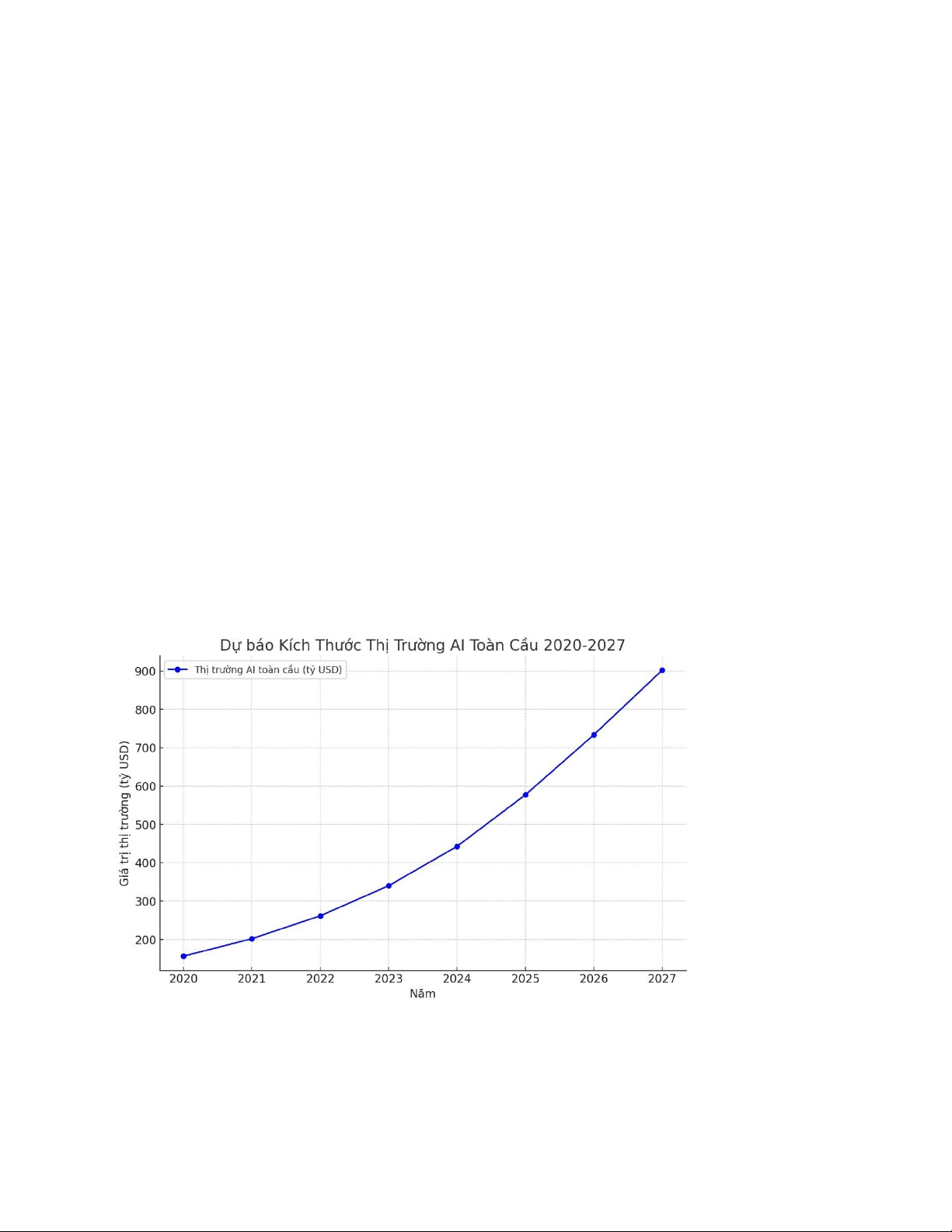 2020 đến 2027, với mức tăng trưởng ấn tượng. Dựa trên các ước tính, thị trường AI dự
