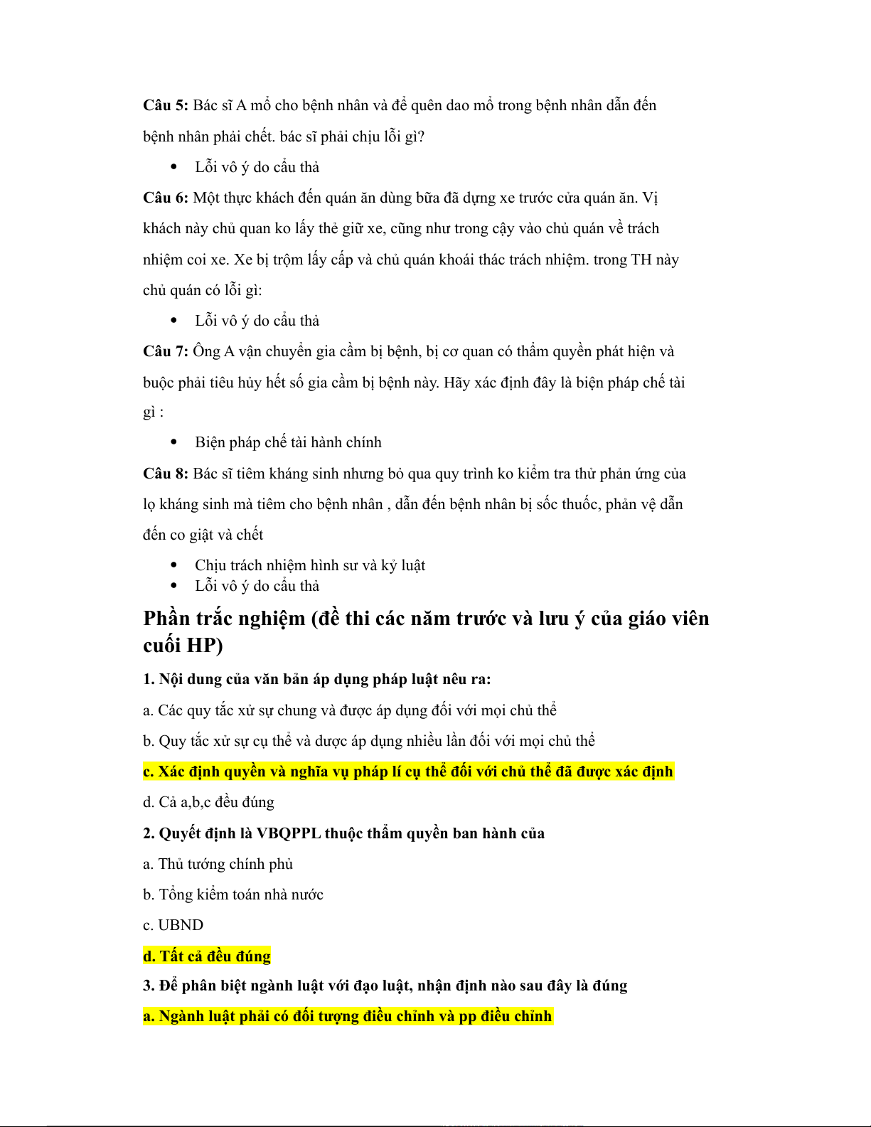 Phần trắc nghiệm (đề thi các năm trước và lưu ý của giáo viên cuối HP)