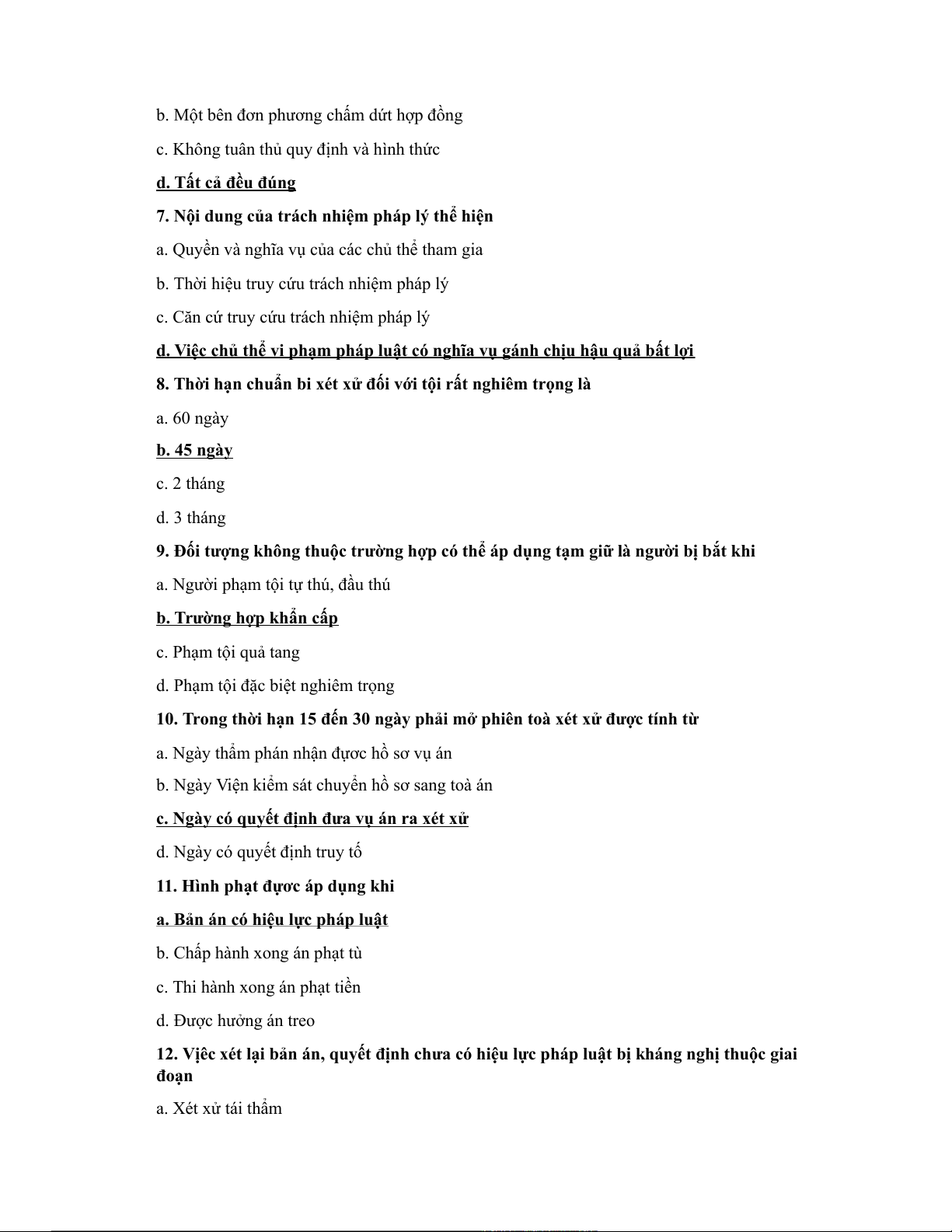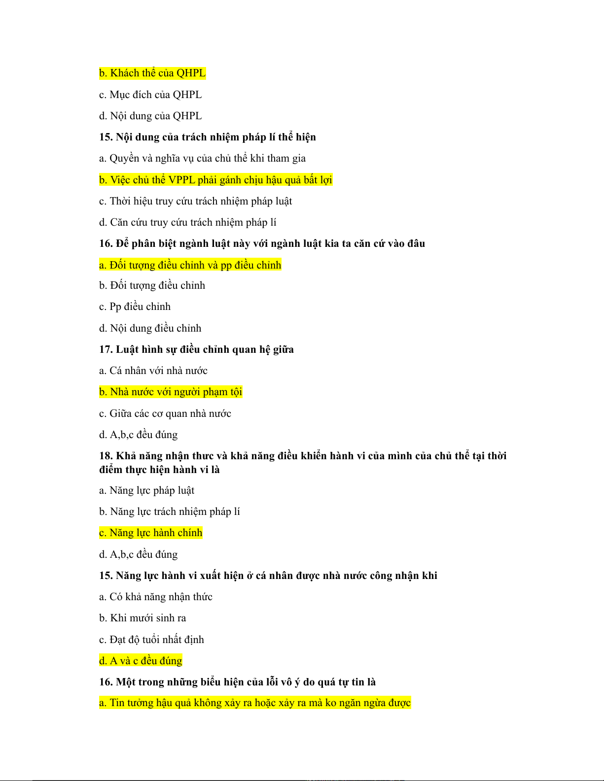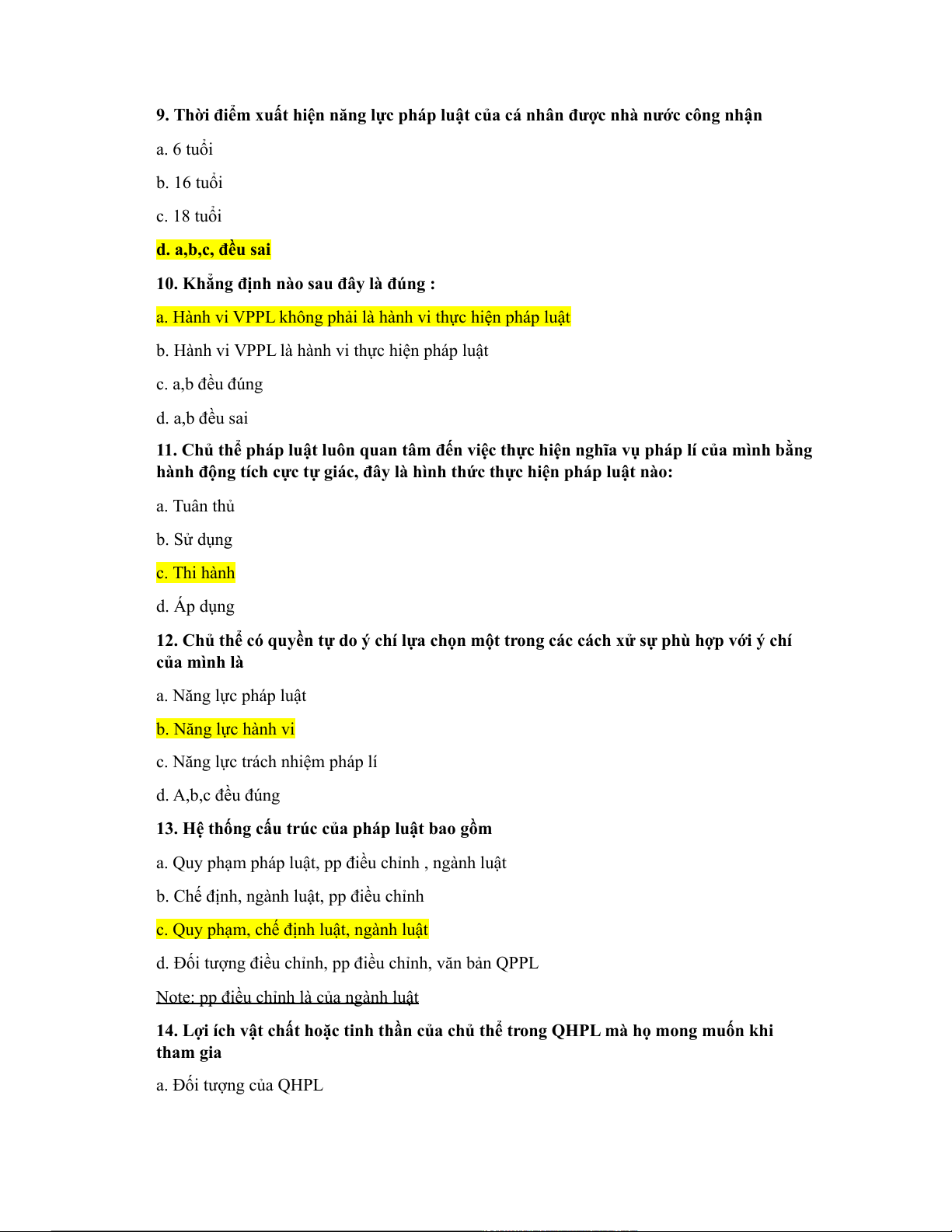 c. Năng lực trách nhiệm pháp lí d. A,b,c đều đúng