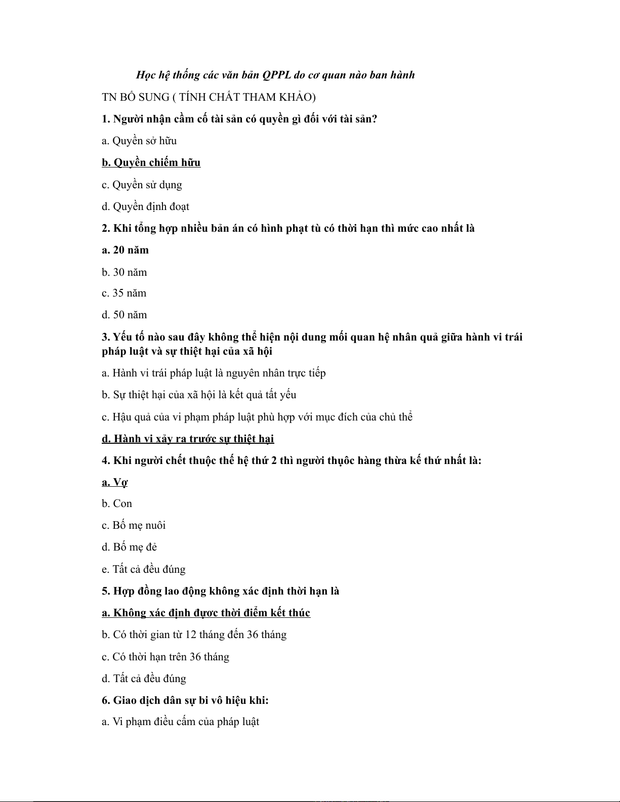 Câu 6: Chủ thể tham gia quan hệ pháp luật cần phải có đầy đủ các loại năng lực sau: