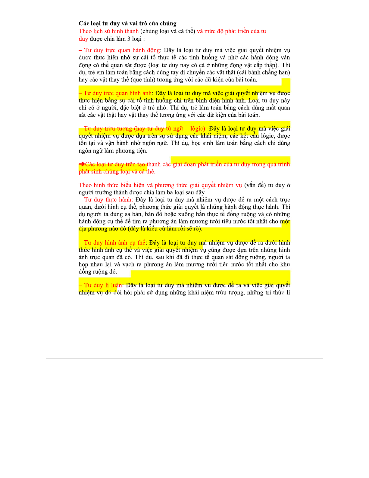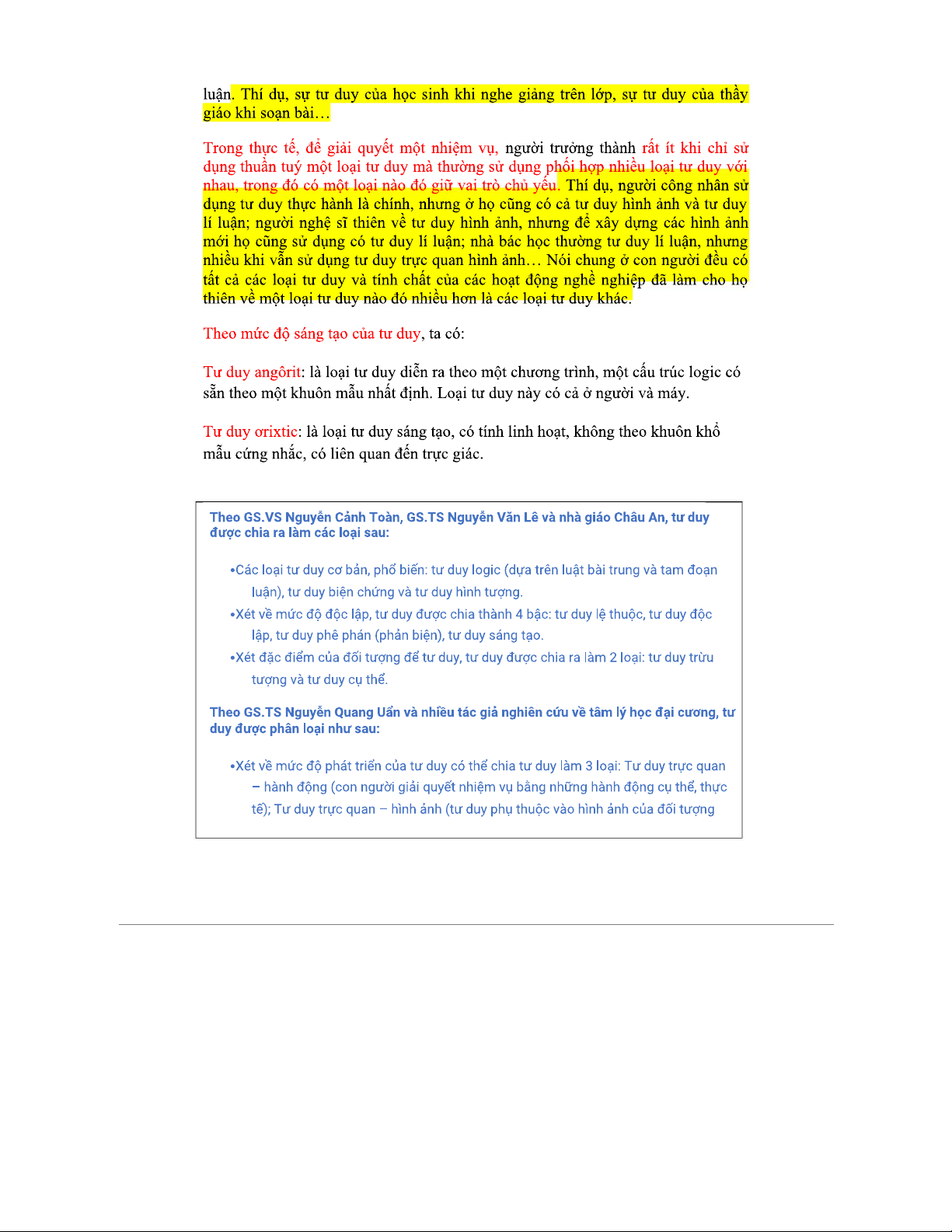 Các loại tư duy và sự phát triển của chúng trong tâm lý học