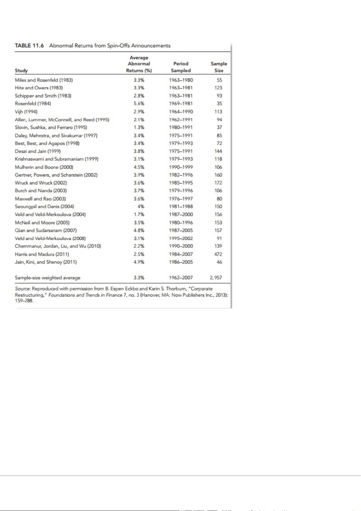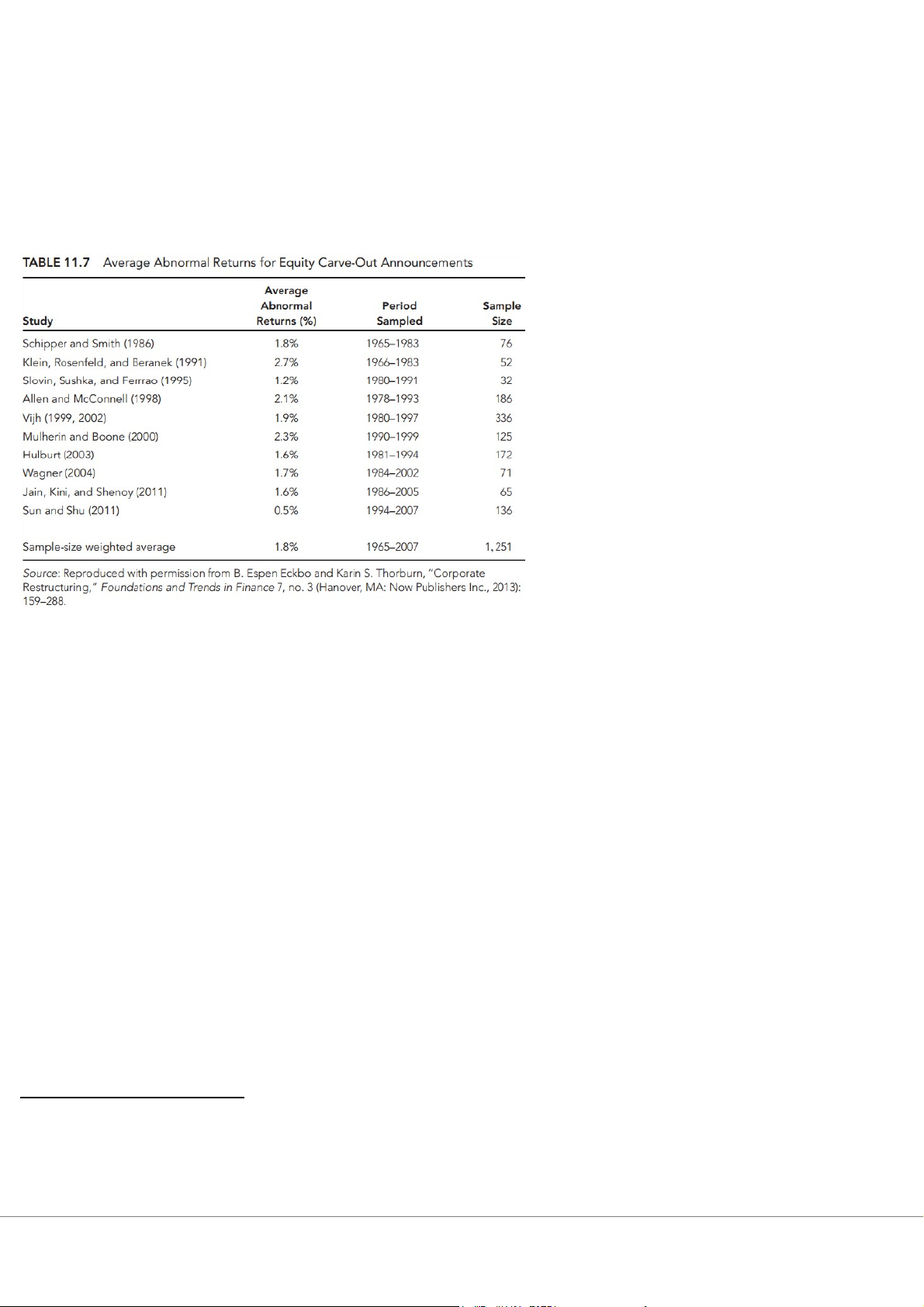 trung bình. Dựa trên một số nghiên cứu đã xem xét tổng cộng 1.251 vụ carve- outs trong giai đoạn 1965–2007, Eckbo và