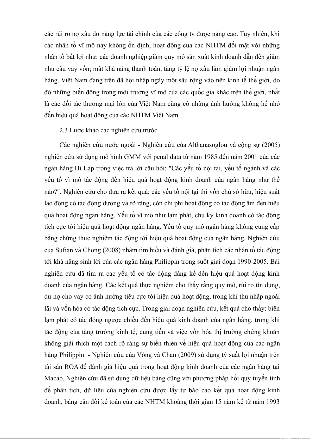 hàng Philippin. - Nghiên cứu của Vòng và Chan (2009) sử dụng tỷ suất lợi nhuận trên