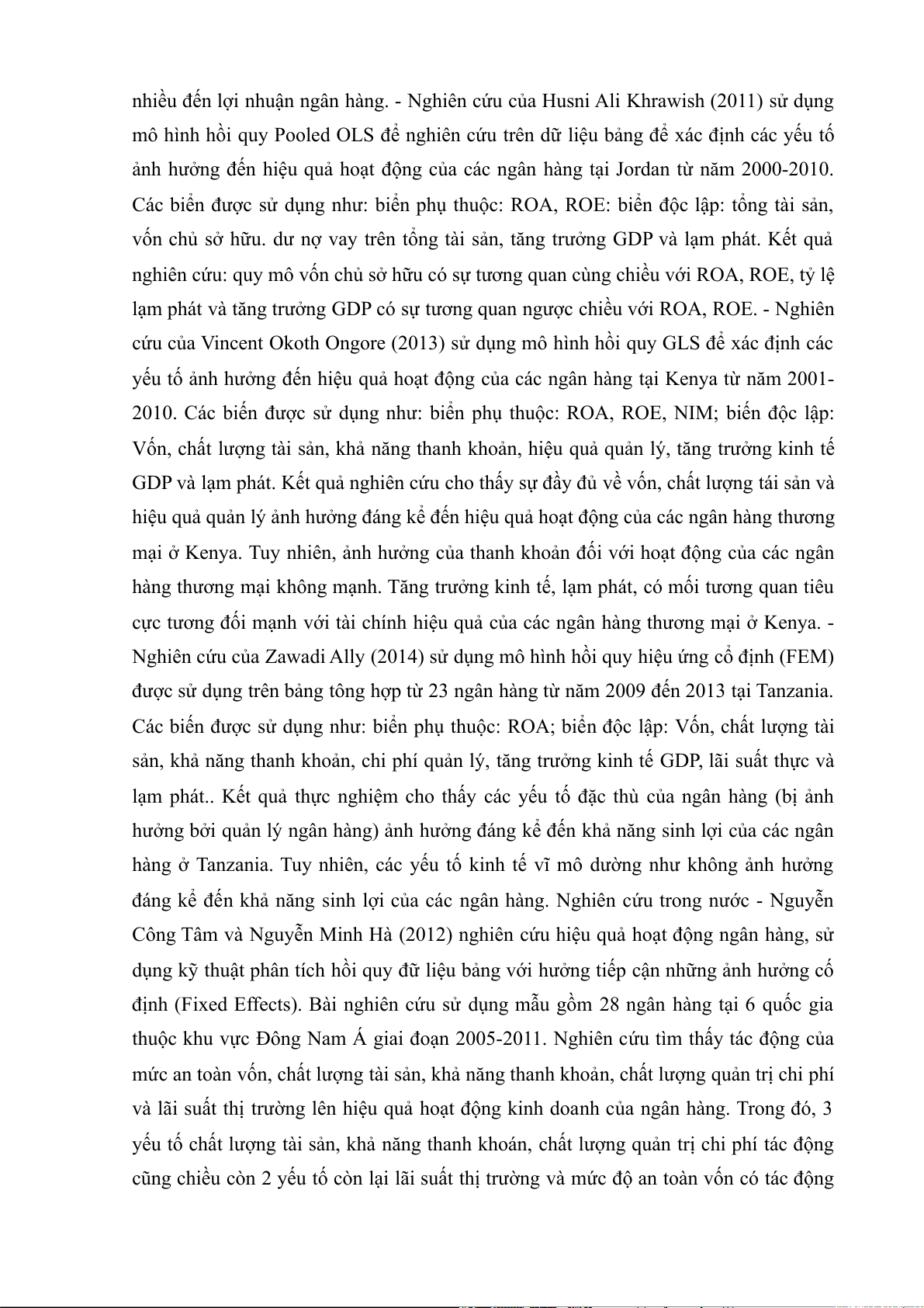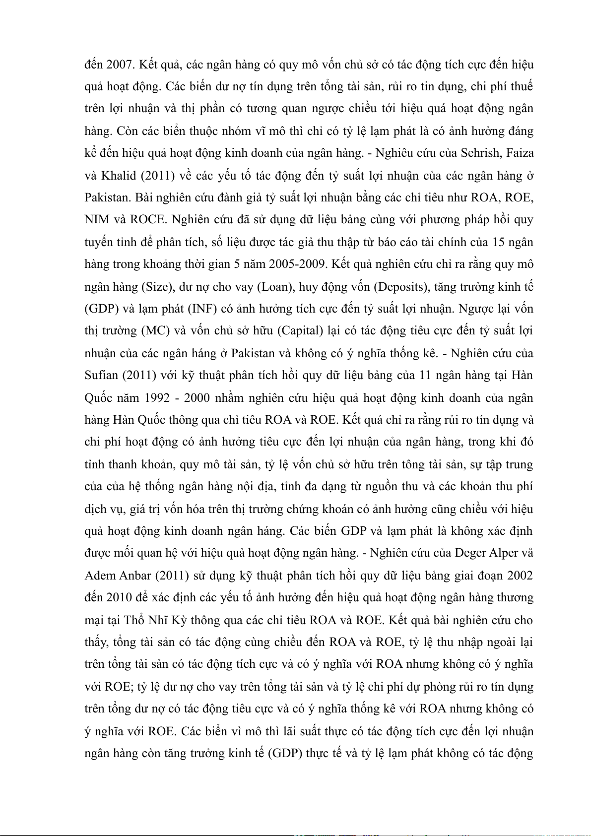 và Khalid (2011) về các yếu tố tác động đến tỷ suất lợi nhuận của các ngân hàng ở