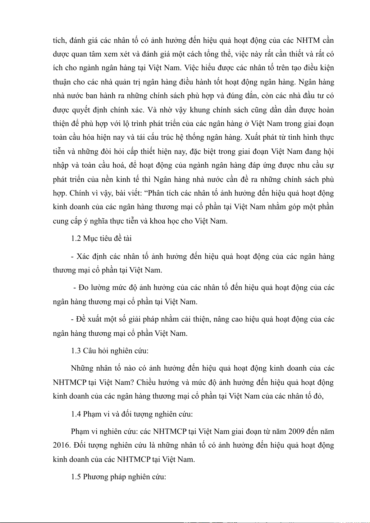 Phạm vi nghiên cứu: các NHTMCP tại Việt Nam giai đoạn từ năm 2009 đến năm