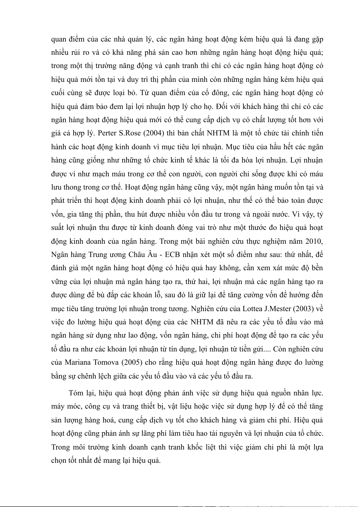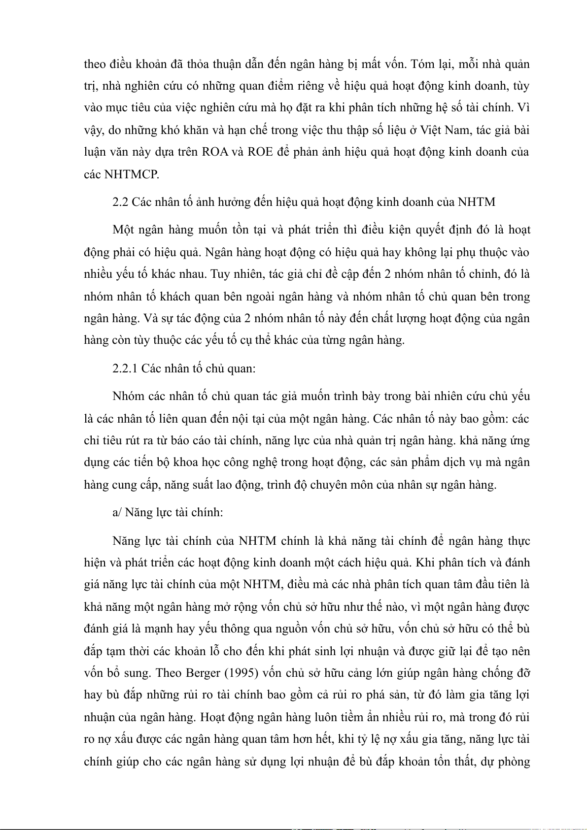 - Chương 2: Lý luận chung về ngân hàng thương mại và hiệu quả hoạt động kinh