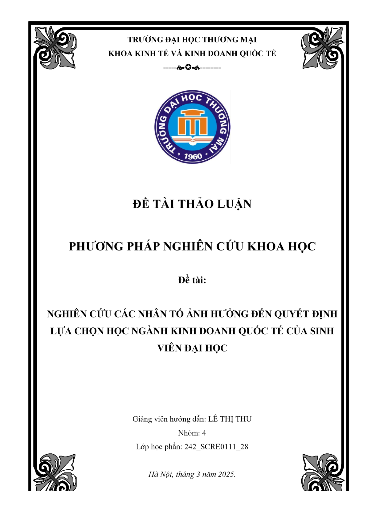 “Nghiên cứu các nhân tố ảnh hưởng đến quyết định lựa chọn học ngành kinh doanh quốc tế